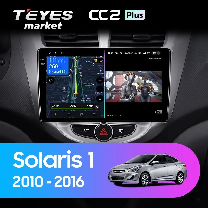 Головное устройство TEYES CC2 Plus 4/64 9" для Hyundai Solaris 2010-2017 - комплектация [F4]