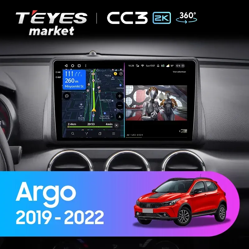 Головное устройство TEYES CC3 2K 360 6/128 9.5" для FIAT Argo 2019-2022