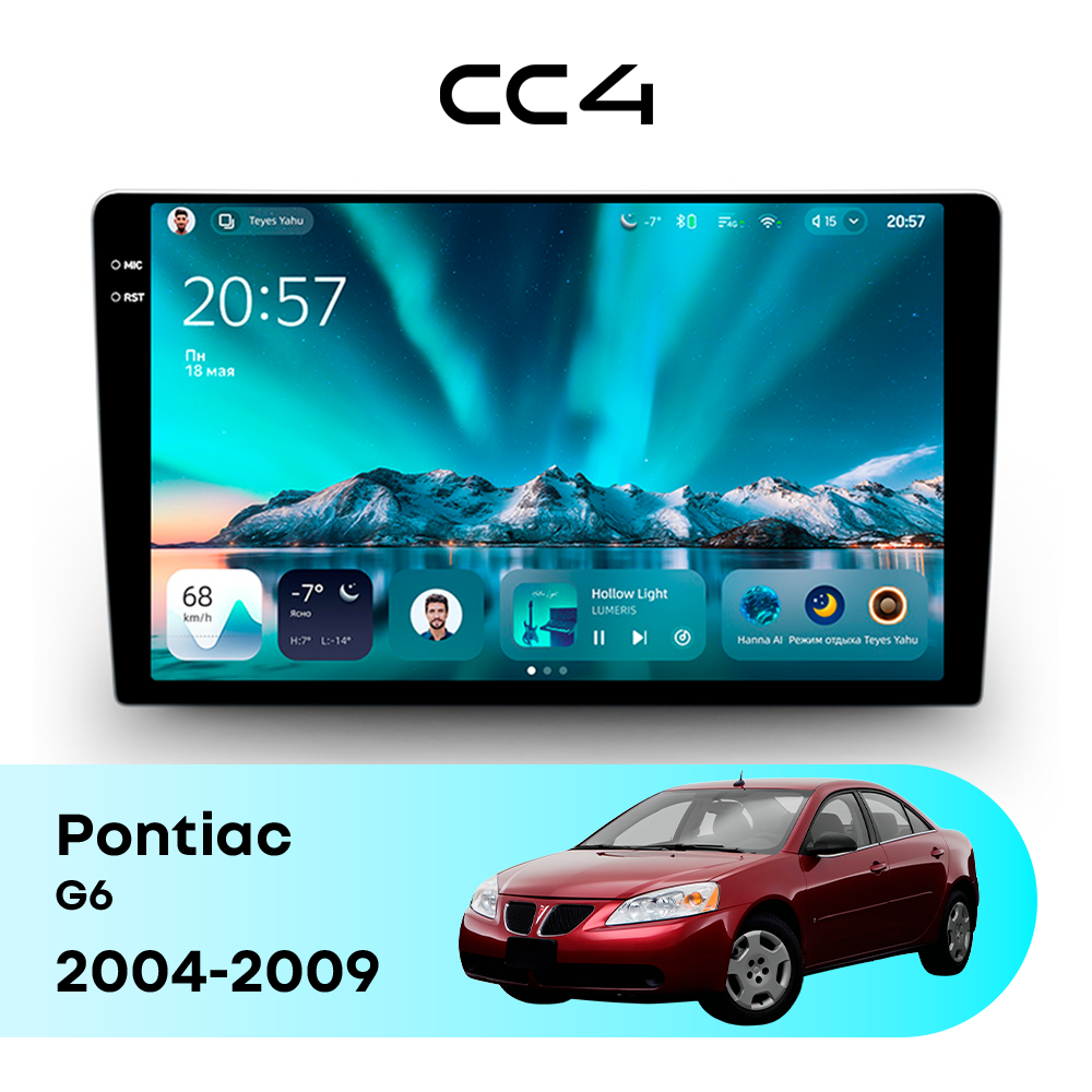 Teyes CC4 для Pontiac G6 2004-2009 — современная штатная магнитола на базе Teyes OS Android 14, которая устанавливается вместо заводского головного устройства и значительно расширяет мультимедийные возможности автомобиля.