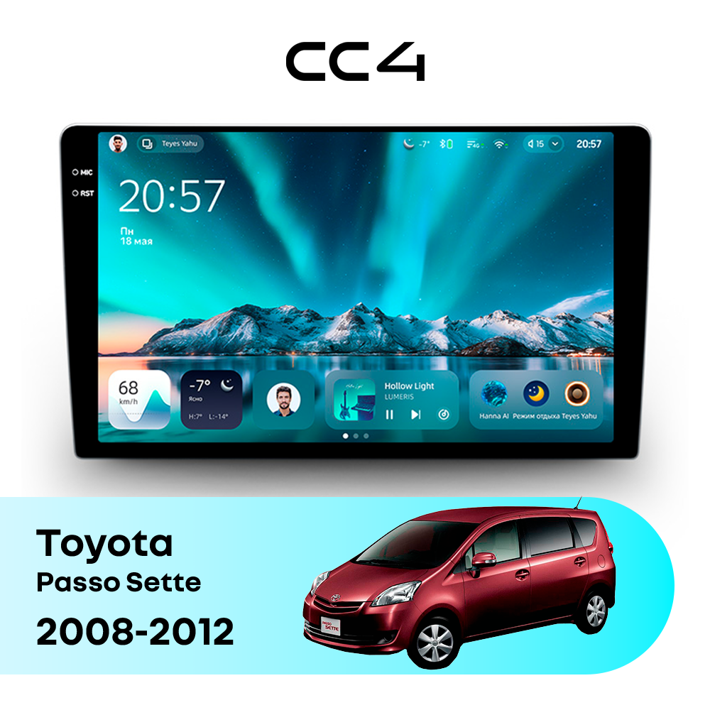Автомагнитола Teyes CC4 — это современная магнитола Android, созданная для владельцев Toyota Passo Sette I (2008-2012), которые хотят получить удобную, быструю и функциональную мультимедийную систему в автомобиле. Магнитола Teyes CC4 превращает салон Toyota Passo Sette в комфортное цифровое пространство для навигации, музыки и мультимедиа с плавным интерфейсом и стабильной работой. Данная магнитола работает на системе Android и оснащена производительным 8-ядерным процессором Qualcomm QCM6125, который обеспечивает стабильную и быструю работу всех основных функций автомагнитолы. Конфигурация 6Gb оперативной памяти и 64Gb встроенной памяти позволяет комфортно использовать навигацию, музыку и онлайн-сервисы без задержек — отличный выбор для Toyota Passo Sette (I (2008-2012)). Магнитола Teyes CC4 оснащена качественным In-cell QLED дисплеем диагональю 10.36" с высоким разрешением 2000×1200 пикселей, обеспечивающим четкое и насыщенное изображение при любом освещении в салоне Toyota Passo Sette. Автомагнитола поддерживает Яндекс Навигатор, Google Maps, YouTube, голосовое управление Teyes, камеры заднего вида и управление с кнопок руля — всё, что нужно для удобства и безопасности в Toyota Passo Sette I (2008-2012). Магнитола Teyes CC4 — это оптимальный выбор по соотношению цены и возможностей среди Android магнитол. Если вам нужна надежная и современная магнитола для Toyota Passo Sette — автомагнитола Teyes CC4 станет отличным решением.