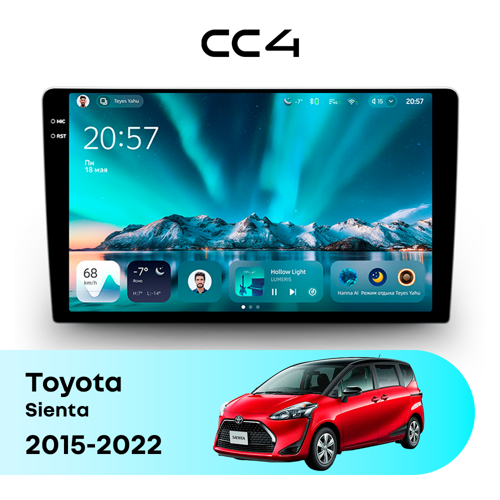 Автомагнитола Teyes CC4 — это современная магнитола Android, созданная для владельцев Toyota Sienta II (2015-2023),II рестайлинг (2018-2022), которые хотят получить удобную, быструю и функциональную мультимедийную систему в автомобиле. Магнитола Teyes CC4 превращает салон Toyota Sienta в комфортное цифровое пространство для навигации, музыки и мультимедиа с плавным интерфейсом и стабильной работой. Данная магнитола работает на системе Android и оснащена производительным 8-ядерным процессором Qualcomm QCM6125, который обеспечивает стабильную и быструю работу всех основных функций автомагнитолы. Конфигурация 6Gb оперативной памяти и 64Gb встроенной памяти позволяет комфортно использовать навигацию, музыку и онлайн-сервисы без задержек — отличный выбор для Toyota Sienta (II (2015-2023),II рестайлинг (2018-2022)). Магнитола Teyes CC4 оснащена качественным In-cell QLED дисплеем диагональю 10.36" с высоким разрешением 2000×1200 пикселей, обеспечивающим четкое и насыщенное изображение при любом освещении в салоне Toyota Sienta. Автомагнитола поддерживает Яндекс Навигатор, Google Maps, YouTube, голосовое управление Teyes, камеры заднего вида и управление с кнопок руля — всё, что нужно для удобства и безопасности в Toyota Sienta II (2015-2023),II рестайлинг (2018-2022). Магнитола Teyes CC4 — это оптимальный выбор по соотношению цены и возможностей среди Android магнитол. Если вам нужна надежная и современная магнитола для Toyota Sienta — автомагнитола Teyes CC4 станет отличным решением.