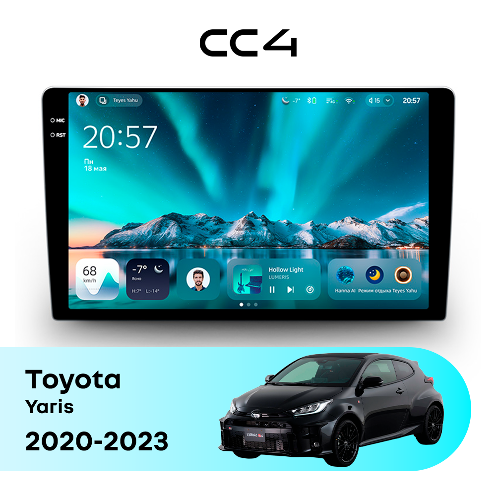 Автомагнитола Teyes CC4 — это современная магнитола Android, созданная для владельцев Toyota Yaris IV (2020-2023), которые хотят получить удобную, быструю и функциональную мультимедийную систему в автомобиле. Магнитола Teyes CC4 превращает салон Toyota Yaris в комфортное цифровое пространство для навигации, музыки и мультимедиа с плавным интерфейсом и стабильной работой. Данная магнитола работает на системе Android и оснащена производительным 8-ядерным процессором Qualcomm QCM6125, который обеспечивает стабильную и быструю работу всех основных функций автомагнитолы. Конфигурация 6Gb оперативной памяти и 64Gb встроенной памяти позволяет комфортно использовать навигацию, музыку и онлайн-сервисы без задержек — отличный выбор для Toyota Yaris (IV (2020-2023)). Магнитола Teyes CC4 оснащена качественным In-cell QLED дисплеем диагональю 10.36" с высоким разрешением 2000×1200 пикселей, обеспечивающим четкое и насыщенное изображение при любом освещении в салоне Toyota Yaris. Автомагнитола поддерживает Яндекс Навигатор, Google Maps, YouTube, голосовое управление Teyes, камеры заднего вида и управление с кнопок руля — всё, что нужно для удобства и безопасности в Toyota Yaris IV (2020-2023). Магнитола Teyes CC4 — это оптимальный выбор по соотношению цены и возможностей среди Android магнитол. Если вам нужна надежная и современная магнитола для Toyota Yaris — автомагнитола Teyes CC4 станет отличным решением.