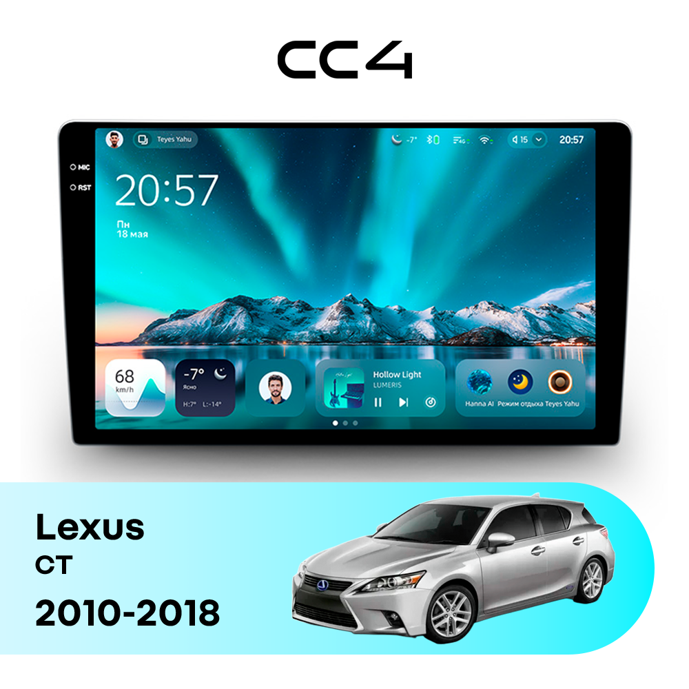 Teyes CC4 для Lexus CT 2010-2018 — современная штатная магнитола на базе Teyes OS Android 14, которая устанавливается вместо заводского головного устройства и значительно расширяет мультимедийные возможности автомобиля.