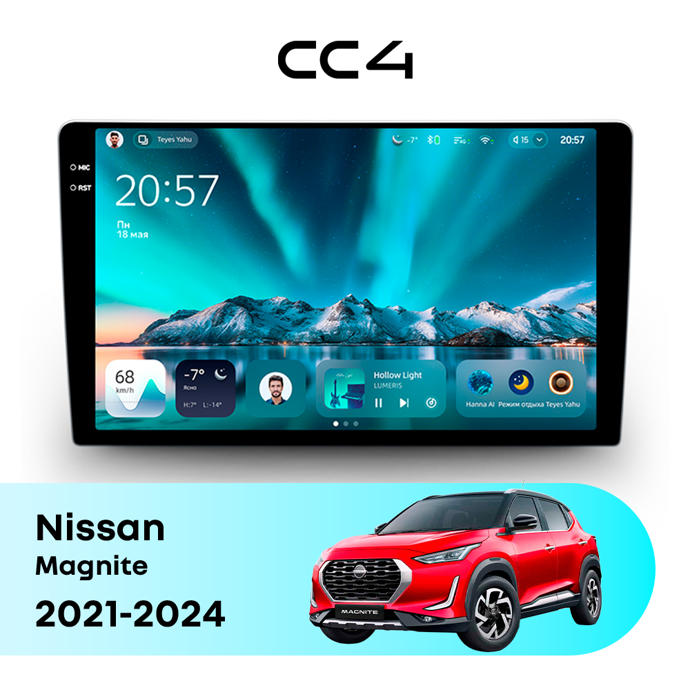 Teyes CC4 для Nissan Magnite 2021-2024 — современная штатная магнитола на базе Teyes OS Android 14, которая устанавливается вместо заводского головного устройства и значительно расширяет мультимедийные возможности автомобиля.