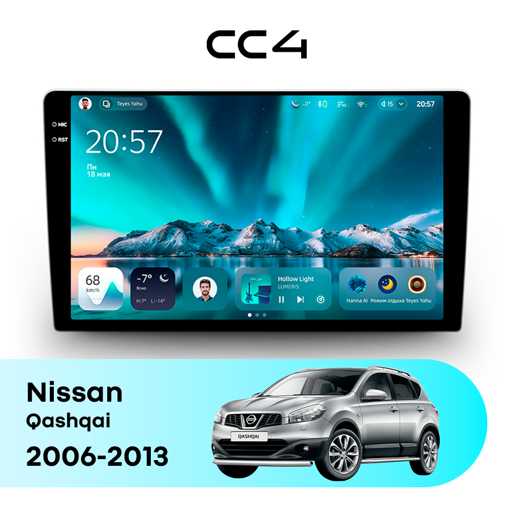 Teyes CC4 для Nissan Qashqai 2006-2013 — современная штатная магнитола на базе Teyes OS Android 14, которая устанавливается вместо заводского головного устройства и значительно расширяет мультимедийные возможности автомобиля.