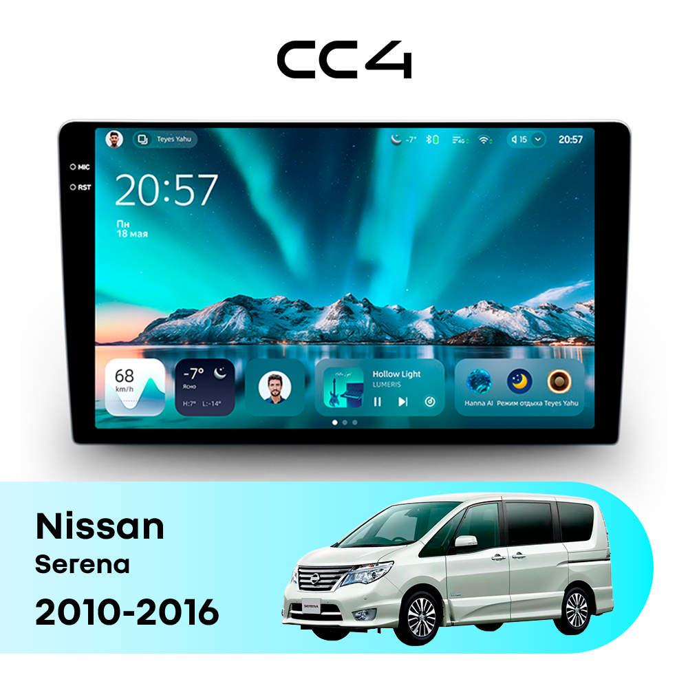 Teyes CC4 для Nissan Serena 2010-2016 — современная штатная магнитола на базе Teyes OS Android 14, которая устанавливается вместо заводского головного устройства и значительно расширяет мультимедийные возможности автомобиля.
