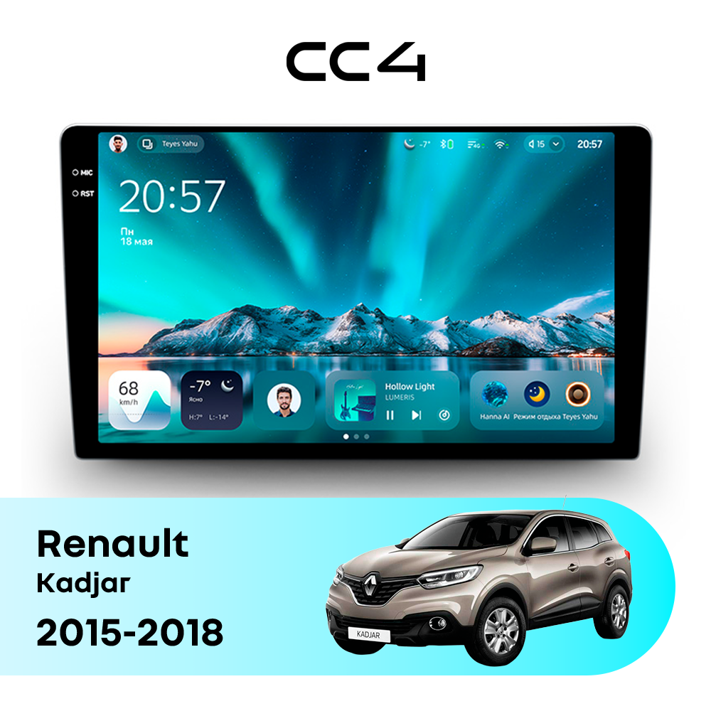 Автомагнитола Teyes CC4 — это современная магнитола Android, созданная для владельцев Renault Kadjar I (2015-2018), которые хотят получить удобную, быструю и функциональную мультимедийную систему в автомобиле. Магнитола Teyes CC4 превращает салон Renault Kadjar в комфортное цифровое пространство для навигации, музыки и мультимедиа с плавным интерфейсом и стабильной работой. Данная магнитола работает на системе Android и оснащена производительным 8-ядерным процессором Qualcomm QCM6125, который обеспечивает стабильную и быструю работу всех основных функций автомагнитолы. Конфигурация 6Gb оперативной памяти и 64Gb встроенной памяти позволяет комфортно использовать навигацию, музыку и онлайн-сервисы без задержек — отличный выбор для Renault Kadjar (I (2015-2018)). Магнитола Teyes CC4 оснащена качественным In-cell QLED дисплеем диагональю 9.5" с высоким разрешением 2000×1200 пикселей, обеспечивающим четкое и насыщенное изображение при любом освещении в салоне Renault Kadjar. Автомагнитола поддерживает Яндекс Навигатор, Google Maps, YouTube, голосовое управление Teyes, камеры заднего вида и управление с кнопок руля — всё, что нужно для удобства и безопасности в Renault Kadjar I (2015-2018). Магнитола Teyes CC4 — это оптимальный выбор по соотношению цены и возможностей среди Android магнитол. Если вам нужна надежная и современная магнитола для Renault Kadjar — автомагнитола Teyes CC4 станет отличным решением.