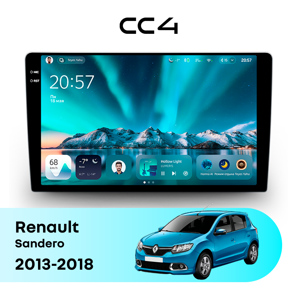 Автомагнитола Teyes CC4 — это современная магнитола Android, созданная для владельцев Renault Sandero II (2013-2018), которые хотят получить удобную, быструю и функциональную мультимедийную систему в автомобиле. Магнитола Teyes CC4 превращает салон Renault Sandero в комфортное цифровое пространство для навигации, музыки и мультимедиа с плавным интерфейсом и стабильной работой. Данная магнитола работает на системе Android и оснащена производительным 8-ядерным процессором Qualcomm QCM6125, который обеспечивает стабильную и быструю работу всех основных функций автомагнитолы. Конфигурация 6Gb оперативной памяти и 64Gb встроенной памяти позволяет комфортно использовать навигацию, музыку и онлайн-сервисы без задержек — отличный выбор для Renault Sandero (II (2013-2018)). Магнитола Teyes CC4 оснащена качественным In-cell QLED дисплеем диагональю 9.5" с высоким разрешением 2000×1200 пикселей, обеспечивающим четкое и насыщенное изображение при любом освещении в салоне Renault Sandero. Автомагнитола поддерживает Яндекс Навигатор, Google Maps, YouTube, голосовое управление Teyes, камеры заднего вида и управление с кнопок руля — всё, что нужно для удобства и безопасности в Renault Sandero II (2013-2018). Магнитола Teyes CC4 — это оптимальный выбор по соотношению цены и возможностей среди Android магнитол. Если вам нужна надежная и современная магнитола для Renault Sandero — автомагнитола Teyes CC4 станет отличным решением.