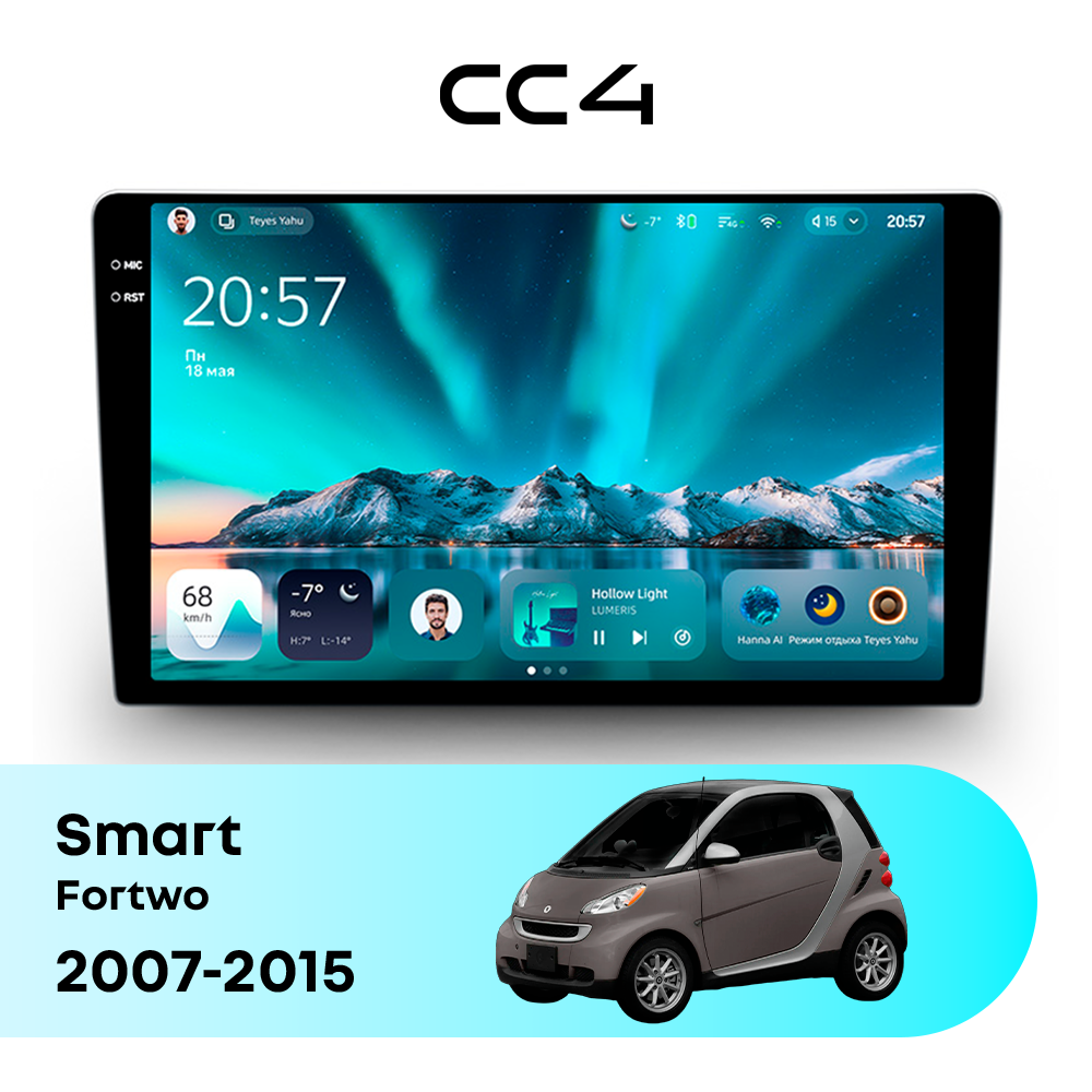 Автомагнитола Teyes CC4 — это современная магнитола Android, созданная для владельцев Smart Fortwo II (2007-2015), которые хотят получить удобную, быструю и функциональную мультимедийную систему в автомобиле. Магнитола Teyes CC4 превращает салон Smart Fortwo в комфортное цифровое пространство для навигации, музыки и мультимедиа с плавным интерфейсом и стабильной работой. Данная магнитола работает на системе Android и оснащена производительным 8-ядерным процессором Qualcomm QCM6125, который обеспечивает стабильную и быструю работу всех основных функций автомагнитолы. Конфигурация 6Gb оперативной памяти и 64Gb встроенной памяти позволяет комфортно использовать навигацию, музыку и онлайн-сервисы без задержек — отличный выбор для Smart Fortwo (II (2007-2015)). Магнитола Teyes CC4 оснащена качественным In-cell QLED дисплеем диагональю 9.5" с высоким разрешением 2000×1200 пикселей, обеспечивающим четкое и насыщенное изображение при любом освещении в салоне Smart Fortwo. Автомагнитола поддерживает Яндекс Навигатор, Google Maps, YouTube, голосовое управление Teyes, камеры заднего вида и управление с кнопок руля — всё, что нужно для удобства и безопасности в Smart Fortwo II (2007-2015). Магнитола Teyes CC4 — это оптимальный выбор по соотношению цены и возможностей среди Android магнитол. Если вам нужна надежная и современная магнитола для Smart Fortwo — автомагнитола Teyes CC4 станет отличным решением.