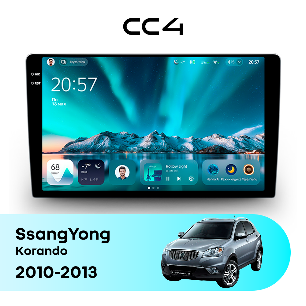 Автомагнитола Teyes CC4 — это современная магнитола Android, созданная для владельцев SsangYong Korando III (2010-2013), которые хотят получить удобную, быструю и функциональную мультимедийную систему в автомобиле. Магнитола Teyes CC4 превращает салон SsangYong Korando в комфортное цифровое пространство для навигации, музыки и мультимедиа с плавным интерфейсом и стабильной работой. Данная магнитола работает на системе Android и оснащена производительным 8-ядерным процессором Qualcomm QCM6125, который обеспечивает стабильную и быструю работу всех основных функций автомагнитолы. Конфигурация 6Gb оперативной памяти и 64Gb встроенной памяти позволяет комфортно использовать навигацию, музыку и онлайн-сервисы без задержек — отличный выбор для SsangYong Korando (III (2010-2013)). Магнитола Teyes CC4 оснащена качественным In-cell QLED дисплеем диагональю 9.5" с высоким разрешением 2000×1200 пикселей, обеспечивающим четкое и насыщенное изображение при любом освещении в салоне SsangYong Korando. Автомагнитола поддерживает Яндекс Навигатор, Google Maps, YouTube, голосовое управление Teyes, камеры заднего вида и управление с кнопок руля — всё, что нужно для удобства и безопасности в SsangYong Korando III (2010-2013). Магнитола Teyes CC4 — это оптимальный выбор по соотношению цены и возможностей среди Android магнитол. Если вам нужна надежная и современная магнитола для SsangYong Korando — автомагнитола Teyes CC4 станет отличным решением.
