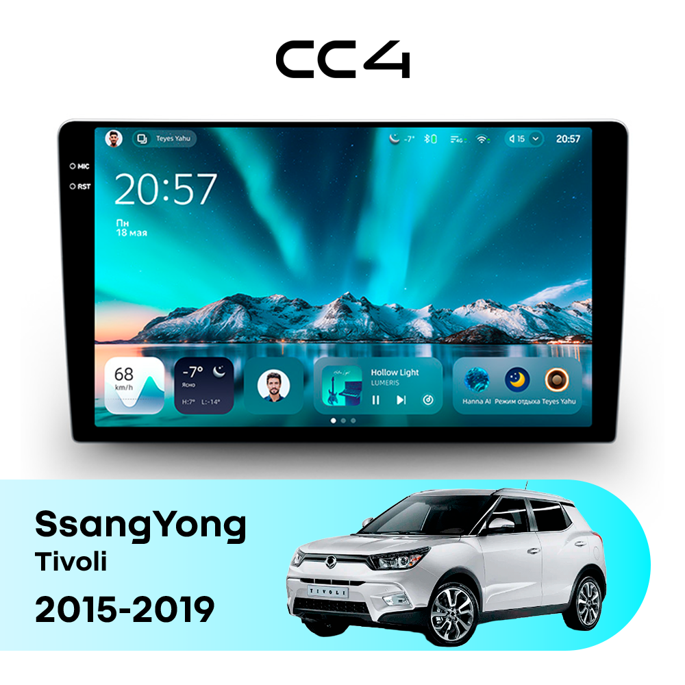 Автомагнитола Teyes CC4 — это современная магнитола Android, созданная для владельцев SsangYong Tivoli I (2015-2019), которые хотят получить удобную, быструю и функциональную мультимедийную систему в автомобиле. Магнитола Teyes CC4 превращает салон SsangYong Tivoli в комфортное цифровое пространство для навигации, музыки и мультимедиа с плавным интерфейсом и стабильной работой. Данная магнитола работает на системе Android и оснащена производительным 8-ядерным процессором Qualcomm QCM6125, который обеспечивает стабильную и быструю работу всех основных функций автомагнитолы. Конфигурация 6Gb оперативной памяти и 64Gb встроенной памяти позволяет комфортно использовать навигацию, музыку и онлайн-сервисы без задержек — отличный выбор для SsangYong Tivoli (I (2015-2019)). Магнитола Teyes CC4 оснащена качественным In-cell QLED дисплеем диагональю 9.5" с высоким разрешением 2000×1200 пикселей, обеспечивающим четкое и насыщенное изображение при любом освещении в салоне SsangYong Tivoli. Автомагнитола поддерживает Яндекс Навигатор, Google Maps, YouTube, голосовое управление Teyes, камеры заднего вида и управление с кнопок руля — всё, что нужно для удобства и безопасности в SsangYong Tivoli I (2015-2019). Магнитола Teyes CC4 — это оптимальный выбор по соотношению цены и возможностей среди Android магнитол. Если вам нужна надежная и современная магнитола для SsangYong Tivoli — автомагнитола Teyes CC4 станет отличным решением.