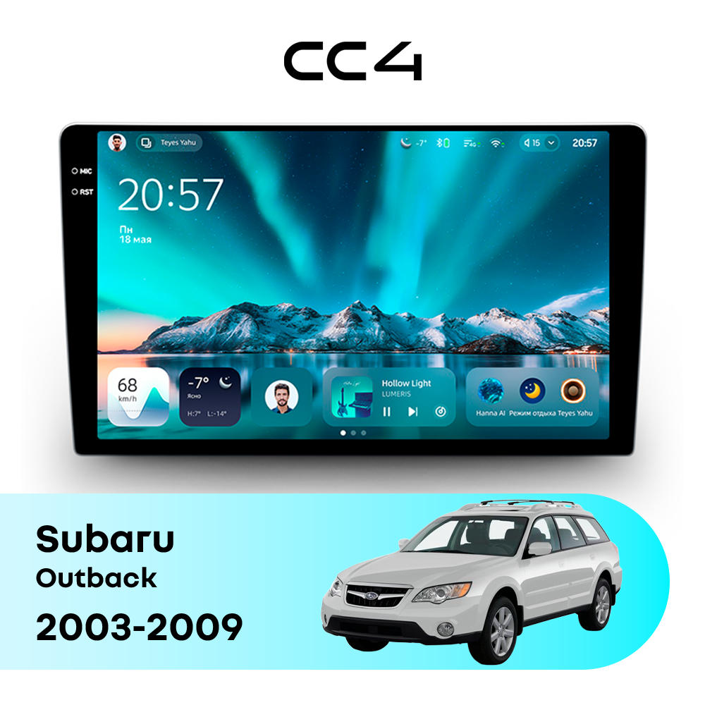 Teyes CC4 для Subaru Outback 2003-2009 — современная штатная магнитола на базе Teyes OS Android 14, которая устанавливается вместо заводского головного устройства и значительно расширяет мультимедийные возможности автомобиля.