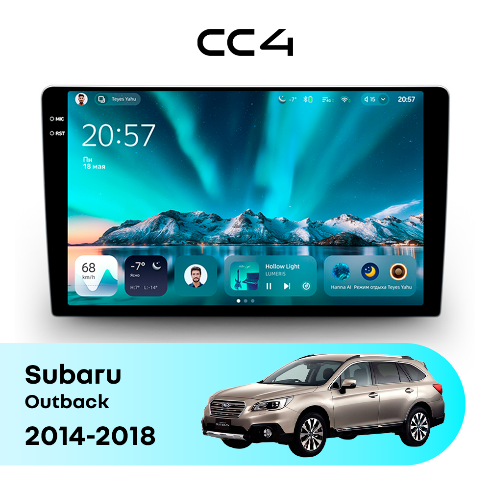 Teyes CC4 для Subaru Outback 2014-2018 — современная штатная магнитола на базе Teyes OS Android 14, которая устанавливается вместо заводского головного устройства и значительно расширяет мультимедийные возможности автомобиля.