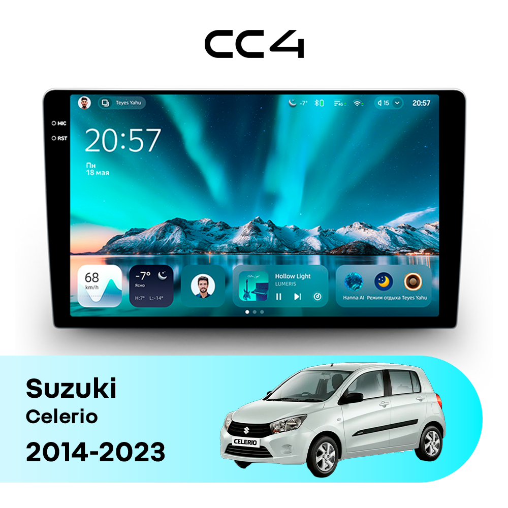 Teyes CC4 для Suzuki Celerio 2014-2023 — современная штатная магнитола на базе Teyes OS Android 14, которая устанавливается вместо заводского головного устройства и значительно расширяет мультимедийные возможности автомобиля.