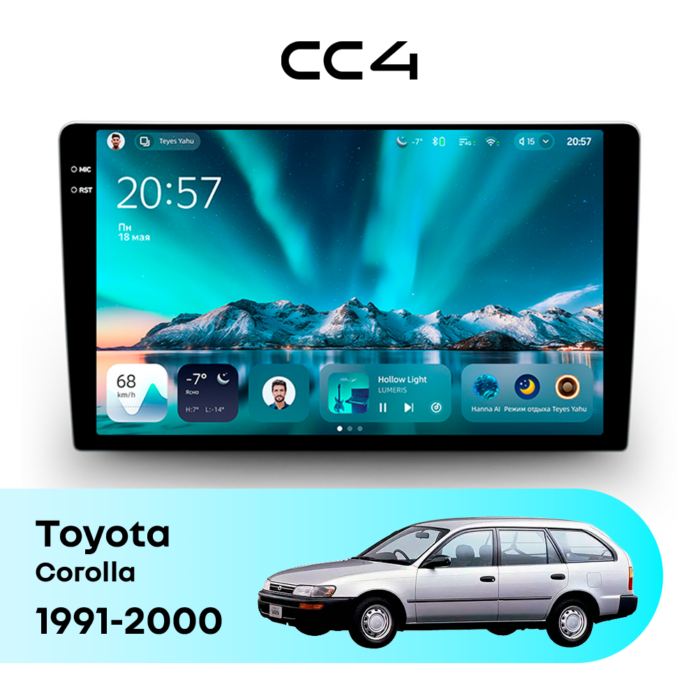 Teyes CC4 для Toyota Corolla 1991-2000 — современная штатная магнитола на базе Teyes OS Android 14, которая устанавливается вместо заводского головного устройства и значительно расширяет мультимедийные возможности автомобиля.