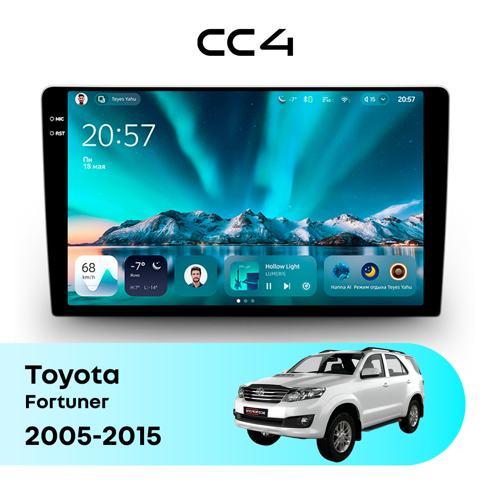 Автомагнитола Teyes CC4 — это современная магнитола Android, созданная для владельцев Toyota Fortuner I (2005-2015), которые хотят получить удобную, быструю и функциональную мультимедийную систему в автомобиле. Магнитола Teyes CC4 превращает салон Toyota Fortuner в комфортное цифровое пространство для навигации, музыки и мультимедиа с плавным интерфейсом и стабильной работой. Данная магнитола работает на системе Android и оснащена производительным 8-ядерным процессором Qualcomm QCM6125, который обеспечивает стабильную и быструю работу всех основных функций автомагнитолы. Конфигурация 6Gb оперативной памяти и 64Gb встроенной памяти позволяет комфортно использовать навигацию, музыку и онлайн-сервисы без задержек — отличный выбор для Toyota Fortuner (I (2005-2015)). Магнитола Teyes CC4 оснащена качественным In-cell QLED дисплеем диагональю 9.5" с высоким разрешением 2000×1200 пикселей, обеспечивающим четкое и насыщенное изображение при любом освещении в салоне Toyota Fortuner. Автомагнитола поддерживает Яндекс Навигатор, Google Maps, YouTube, голосовое управление Teyes, камеры заднего вида и управление с кнопок руля — всё, что нужно для удобства и безопасности в Toyota Fortuner I (2005-2015). Магнитола Teyes CC4 — это оптимальный выбор по соотношению цены и возможностей среди Android магнитол. Если вам нужна надежная и современная магнитола для Toyota Fortuner — автомагнитола Teyes CC4 станет отличным решением.