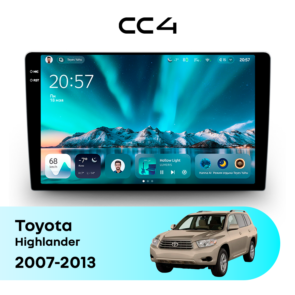 Teyes CC4 для Toyota Highlander 2007-2013 — современная штатная магнитола на базе Teyes OS Android 14, которая устанавливается вместо заводского головного устройства и значительно расширяет мультимедийные возможности автомобиля.
