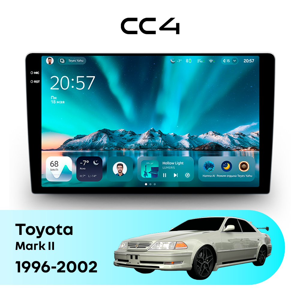 Автомагнитола Teyes CC4 — это современная магнитола Android, созданная для владельцев Toyota Mark II X100 (1996-2002), которые хотят получить удобную, быструю и функциональную мультимедийную систему в автомобиле. Магнитола Teyes CC4 превращает салон Toyota Mark II в комфортное цифровое пространство для навигации, музыки и мультимедиа с плавным интерфейсом и стабильной работой. Данная магнитола работает на системе Android и оснащена производительным 8-ядерным процессором Qualcomm QCM6125, который обеспечивает стабильную и быструю работу всех основных функций автомагнитолы. Конфигурация 6Gb оперативной памяти и 64Gb встроенной памяти позволяет комфортно использовать навигацию, музыку и онлайн-сервисы без задержек — отличный выбор для Toyota Mark II (X100 (1996-2002)). Магнитола Teyes CC4 оснащена качественным In-cell QLED дисплеем диагональю 9.5" с высоким разрешением 2000×1200 пикселей, обеспечивающим четкое и насыщенное изображение при любом освещении в салоне Toyota Mark II. Автомагнитола поддерживает Яндекс Навигатор, Google Maps, YouTube, голосовое управление Teyes, камеры заднего вида и управление с кнопок руля — всё, что нужно для удобства и безопасности в Toyota Mark II X100 (1996-2002). Магнитола Teyes CC4 — это оптимальный выбор по соотношению цены и возможностей среди Android магнитол. Если вам нужна надежная и современная магнитола для Toyota Mark II — автомагнитола Teyes CC4 станет отличным решением.