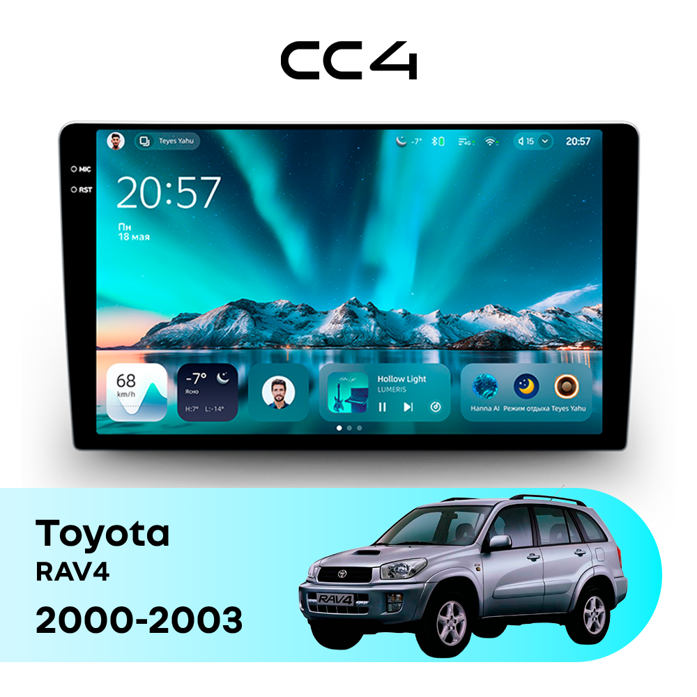 Автомагнитола Teyes CC4 — это современная магнитола Android, созданная для владельцев Toyota RAV4 II (2000-2003), которые хотят получить удобную, быструю и функциональную мультимедийную систему в автомобиле. Магнитола Teyes CC4 превращает салон Toyota RAV4 в комфортное цифровое пространство для навигации, музыки и мультимедиа с плавным интерфейсом и стабильной работой. Данная магнитола работает на системе Android и оснащена производительным 8-ядерным процессором Qualcomm QCM6125, который обеспечивает стабильную и быструю работу всех основных функций автомагнитолы. Конфигурация 6Gb оперативной памяти и 64Gb встроенной памяти позволяет комфортно использовать навигацию, музыку и онлайн-сервисы без задержек — отличный выбор для Toyota RAV4 (II (2000-2003)). Магнитола Teyes CC4 оснащена качественным In-cell QLED дисплеем диагональю 9.5" с высоким разрешением 2000×1200 пикселей, обеспечивающим четкое и насыщенное изображение при любом освещении в салоне Toyota RAV4. Автомагнитола поддерживает Яндекс Навигатор, Google Maps, YouTube, голосовое управление Teyes, камеры заднего вида и управление с кнопок руля — всё, что нужно для удобства и безопасности в Toyota RAV4 II (2000-2003). Магнитола Teyes CC4 — это оптимальный выбор по соотношению цены и возможностей среди Android магнитол. Если вам нужна надежная и современная магнитола для Toyota RAV4 — автомагнитола Teyes CC4 станет отличным решением.