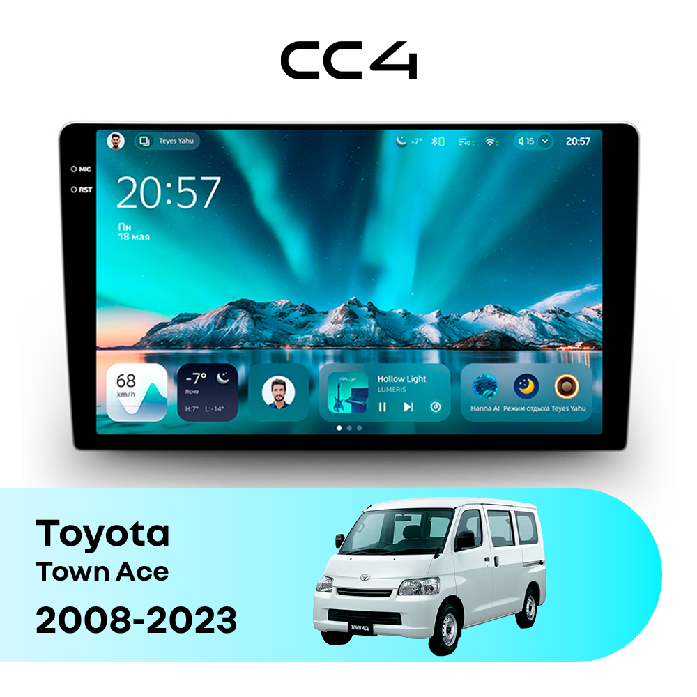 Автомагнитола Teyes CC4 — это современная магнитола Android, созданная для владельцев Toyota Town Ace V (2008-2023), которые хотят получить удобную, быструю и функциональную мультимедийную систему в автомобиле. Магнитола Teyes CC4 превращает салон Toyota Town Ace в комфортное цифровое пространство для навигации, музыки и мультимедиа с плавным интерфейсом и стабильной работой. Данная магнитола работает на системе Android и оснащена производительным 8-ядерным процессором Qualcomm QCM6125, который обеспечивает стабильную и быструю работу всех основных функций автомагнитолы. Конфигурация 6Gb оперативной памяти и 64Gb встроенной памяти позволяет комфортно использовать навигацию, музыку и онлайн-сервисы без задержек — отличный выбор для Toyota Town Ace (V (2008-2023)). Магнитола Teyes CC4 оснащена качественным In-cell QLED дисплеем диагональю 9.5" с высоким разрешением 2000×1200 пикселей, обеспечивающим четкое и насыщенное изображение при любом освещении в салоне Toyota Town Ace. Автомагнитола поддерживает Яндекс Навигатор, Google Maps, YouTube, голосовое управление Teyes, камеры заднего вида и управление с кнопок руля — всё, что нужно для удобства и безопасности в Toyota Town Ace V (2008-2023). Магнитола Teyes CC4 — это оптимальный выбор по соотношению цены и возможностей среди Android магнитол. Если вам нужна надежная и современная магнитола для Toyota Town Ace — автомагнитола Teyes CC4 станет отличным решением.