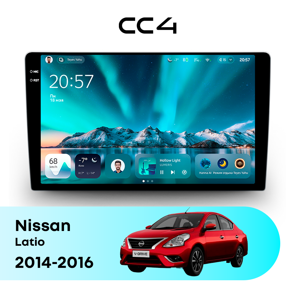 Teyes CC4 для Nissan Latio 2014-2016 — современная штатная магнитола на базе Teyes OS Android 14, которая устанавливается вместо заводского головного устройства и значительно расширяет мультимедийные возможности автомобиля.