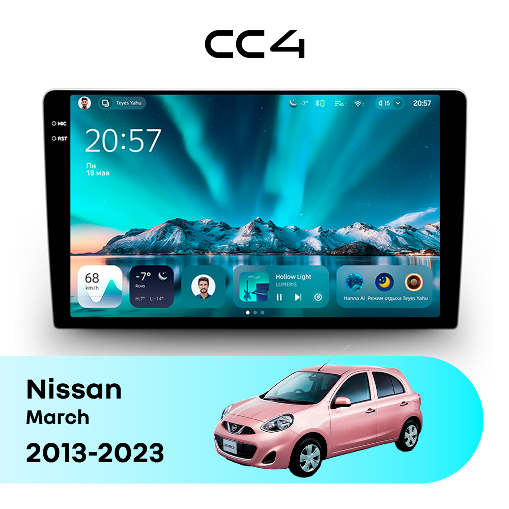 Teyes CC4 для Nissan March 2013-2023 — современная штатная магнитола на базе Teyes OS Android 14, которая устанавливается вместо заводского головного устройства и значительно расширяет мультимедийные возможности автомобиля.