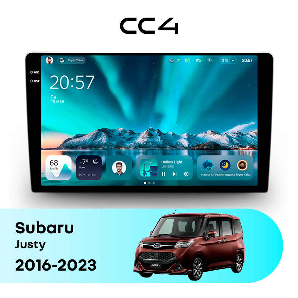 Teyes CC4 для Subaru Justy 2016-2023 — современная штатная магнитола на базе Teyes OS Android 14, которая устанавливается вместо заводского головного устройства и значительно расширяет мультимедийные возможности автомобиля.
