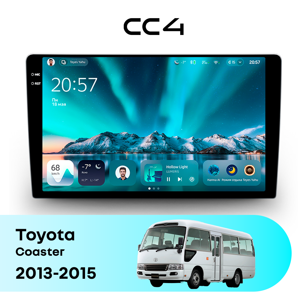 Автомагнитола Teyes CC4 — это современная магнитола Android, созданная для владельцев Toyota Coaster 2013-2015, которые хотят получить удобную, быструю и функциональную мультимедийную систему в автомобиле. Магнитола Teyes CC4 превращает салон Toyota Coaster в комфортное цифровое пространство для навигации, музыки и мультимедиа с плавным интерфейсом и стабильной работой. Данная магнитола работает на системе Android и оснащена производительным 8-ядерным процессором Qualcomm QCM6125, который обеспечивает стабильную и быструю работу всех основных функций автомагнитолы. Конфигурация 8Gb оперативной памяти и 128Gb встроенной памяти позволяет комфортно использовать навигацию, музыку и онлайн-сервисы без задержек — отличный выбор для Toyota Coaster (2013-2015). Магнитола Teyes CC4 оснащена качественным In-cell QLED дисплеем диагональю 10.36" с высоким разрешением 2000×1200 пикселей, обеспечивающим четкое и насыщенное изображение при любом освещении в салоне Toyota Coaster. Автомагнитола поддерживает Яндекс Навигатор, Google Maps, YouTube, голосовое управление Teyes, камеры заднего вида и управление с кнопок руля — всё, что нужно для удобства и безопасности в Toyota Coaster 2013-2015. Магнитола Teyes CC4 — это оптимальный выбор по соотношению цены и возможностей среди Android магнитол. Если вам нужна надежная и современная магнитола для Toyota Coaster — автомагнитола Teyes CC4 станет отличным решением.