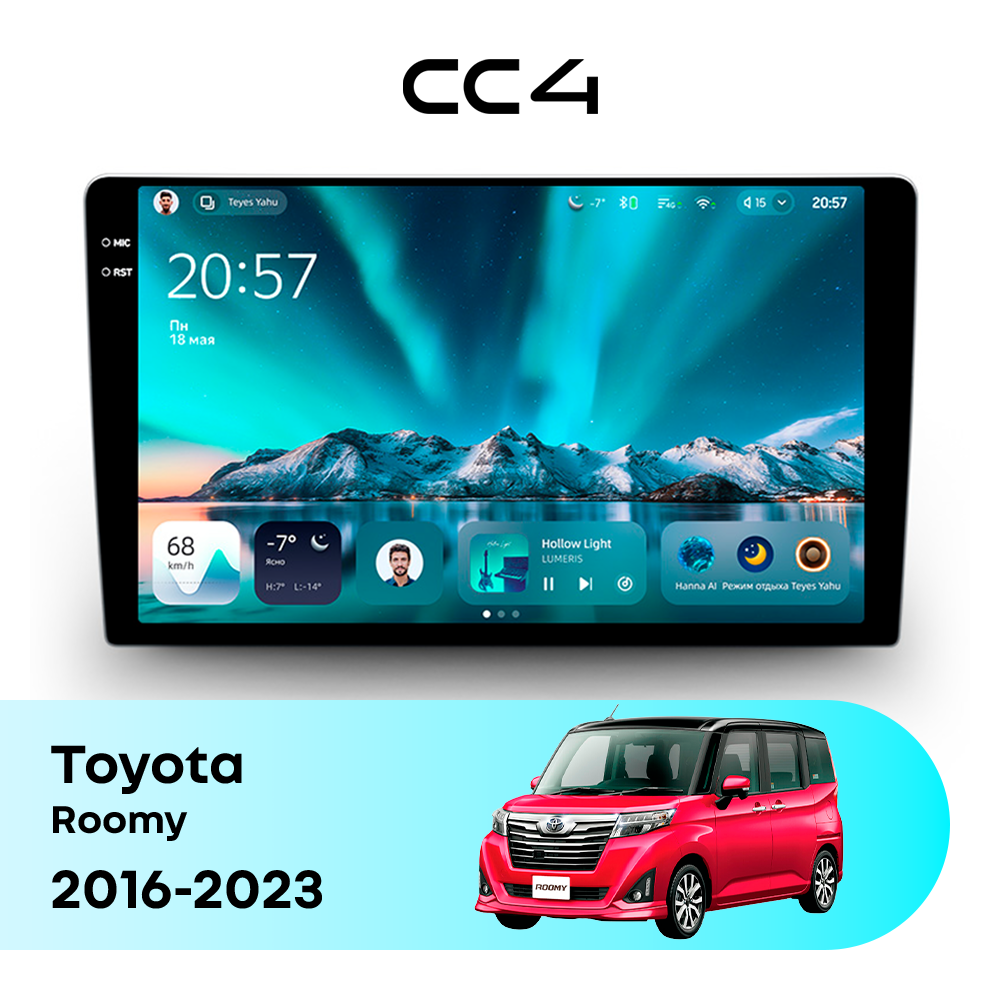 Автомагнитола Teyes CC4 — это современная магнитола Android, созданная для владельцев Toyota Roomy I (2016-2023), которые хотят получить удобную, быструю и функциональную мультимедийную систему в автомобиле. Магнитола Teyes CC4 превращает салон Toyota Roomy в комфортное цифровое пространство для навигации, музыки и мультимедиа с плавным интерфейсом и стабильной работой. Данная магнитола работает на системе Android и оснащена производительным 8-ядерным процессором Qualcomm QCM6125, который обеспечивает стабильную и быструю работу всех основных функций автомагнитолы. Конфигурация 8Gb оперативной памяти и 128Gb встроенной памяти позволяет комфортно использовать навигацию, музыку и онлайн-сервисы без задержек — отличный выбор для Toyota Roomy (I (2016-2023)). Магнитола Teyes CC4 оснащена качественным In-cell QLED дисплеем диагональю 10.36" с высоким разрешением 2000×1200 пикселей, обеспечивающим четкое и насыщенное изображение при любом освещении в салоне Toyota Roomy. Автомагнитола поддерживает Яндекс Навигатор, Google Maps, YouTube, голосовое управление Teyes, камеры заднего вида и управление с кнопок руля — всё, что нужно для удобства и безопасности в Toyota Roomy I (2016-2023). Магнитола Teyes CC4 — это оптимальный выбор по соотношению цены и возможностей среди Android магнитол. Если вам нужна надежная и современная магнитола для Toyota Roomy — автомагнитола Teyes CC4 станет отличным решением.