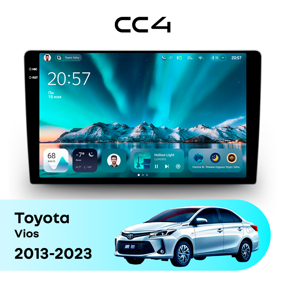 Автомагнитола Teyes CC4 — это современная магнитола Android, созданная для владельцев Toyota Vios III (2013-2023), которые хотят получить удобную, быструю и функциональную мультимедийную систему в автомобиле. Магнитола Teyes CC4 превращает салон Toyota Vios в комфортное цифровое пространство для навигации, музыки и мультимедиа с плавным интерфейсом и стабильной работой. Данная магнитола работает на системе Android и оснащена производительным 8-ядерным процессором Qualcomm QCM6125, который обеспечивает стабильную и быструю работу всех основных функций автомагнитолы. Конфигурация 8Gb оперативной памяти и 128Gb встроенной памяти позволяет комфортно использовать навигацию, музыку и онлайн-сервисы без задержек — отличный выбор для Toyota Vios (III (2013-2023)). Магнитола Teyes CC4 оснащена качественным In-cell QLED дисплеем диагональю 10.36" с высоким разрешением 2000×1200 пикселей, обеспечивающим четкое и насыщенное изображение при любом освещении в салоне Toyota Vios. Автомагнитола поддерживает Яндекс Навигатор, Google Maps, YouTube, голосовое управление Teyes, камеры заднего вида и управление с кнопок руля — всё, что нужно для удобства и безопасности в Toyota Vios III (2013-2023). Магнитола Teyes CC4 — это оптимальный выбор по соотношению цены и возможностей среди Android магнитол. Если вам нужна надежная и современная магнитола для Toyota Vios — автомагнитола Teyes CC4 станет отличным решением.