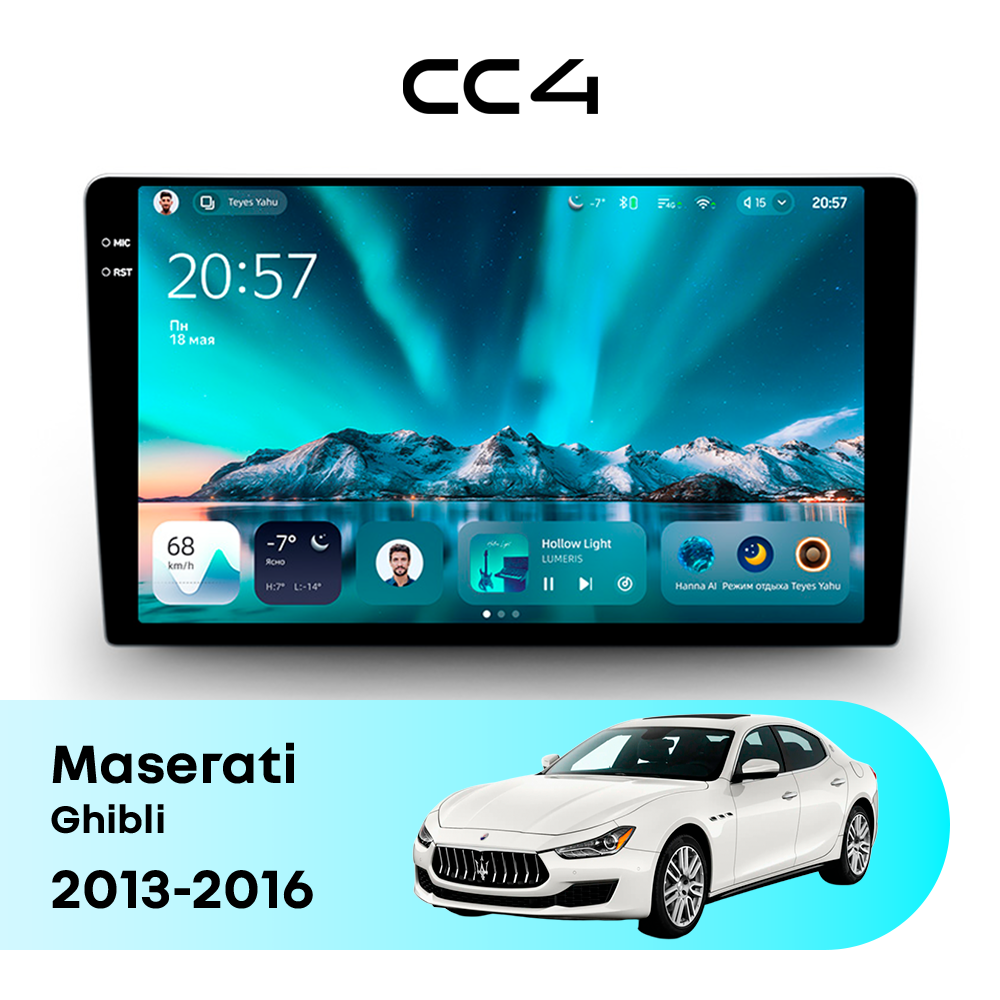 Teyes CC4 для Maserati Ghibli 2013-2016 — современная штатная магнитола на базе Teyes OS Android 14, которая устанавливается вместо заводского головного устройства и значительно расширяет мультимедийные возможности автомобиля.