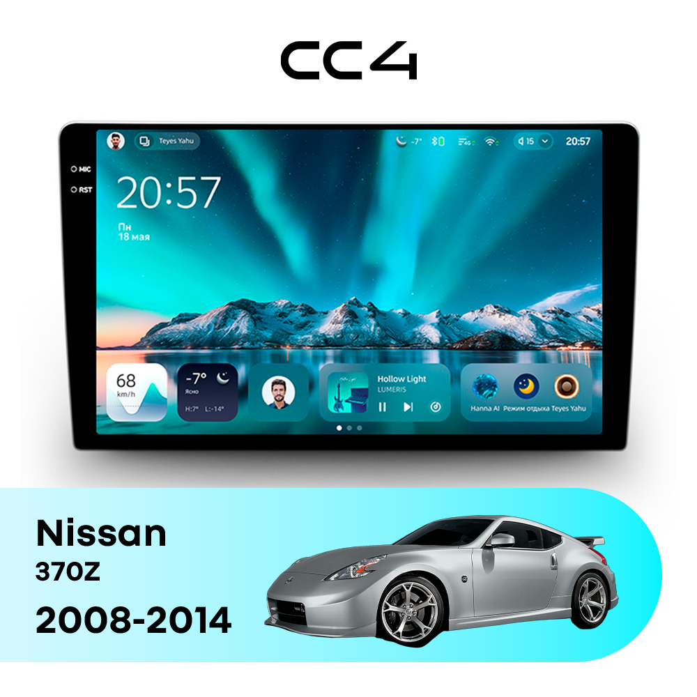 Teyes CC4 для Nissan 370Z 2008-2014 — современная штатная магнитола на базе Teyes OS Android 14, которая устанавливается вместо заводского головного устройства и значительно расширяет мультимедийные возможности автомобиля.