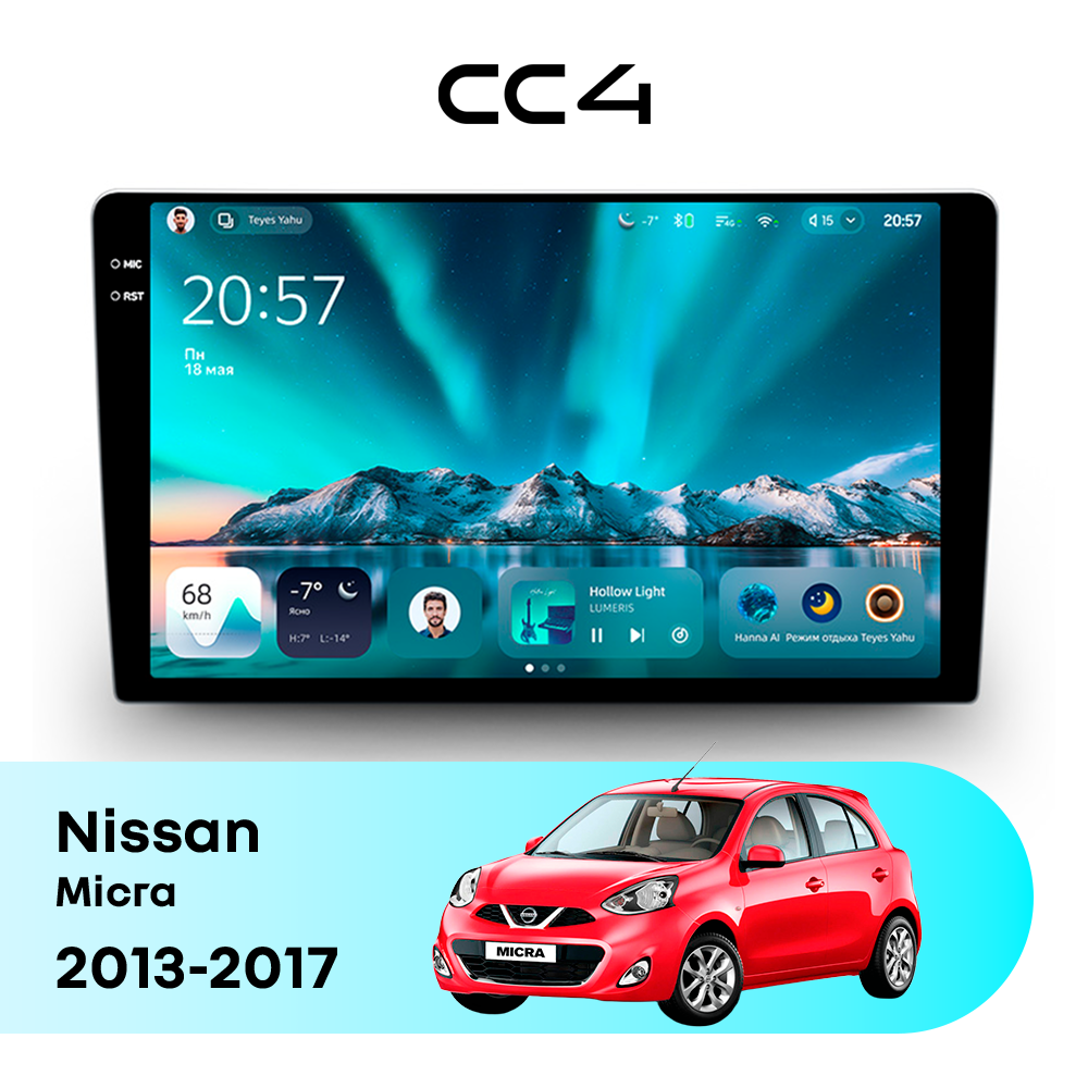 Teyes CC4 для Nissan Micra 2013-2017 — современная штатная магнитола на базе Teyes OS Android 14, которая устанавливается вместо заводского головного устройства и значительно расширяет мультимедийные возможности автомобиля.