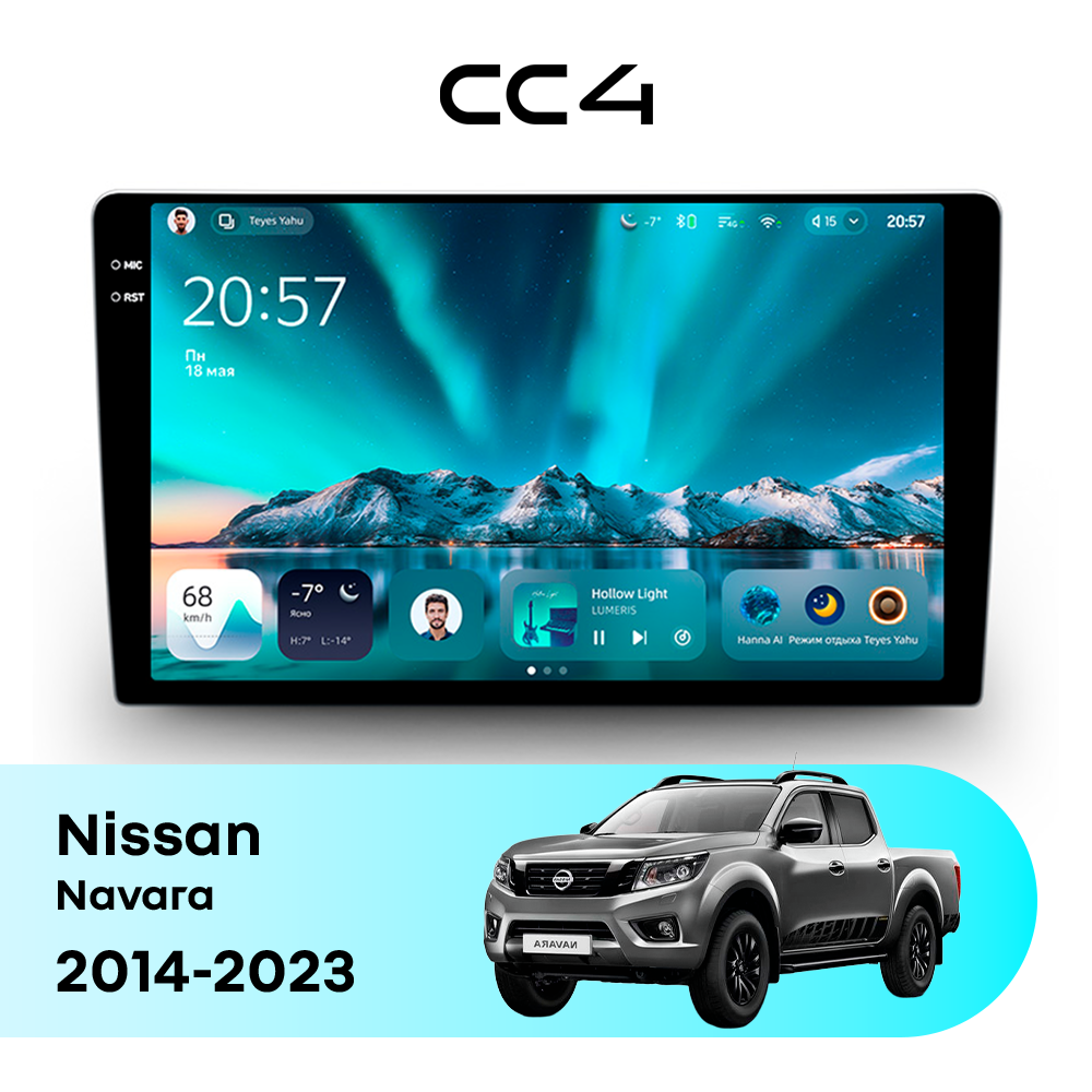 Teyes CC4 для Nissan Navara 2014-2023 — современная штатная магнитола на базе Teyes OS Android 14, которая устанавливается вместо заводского головного устройства и значительно расширяет мультимедийные возможности автомобиля.