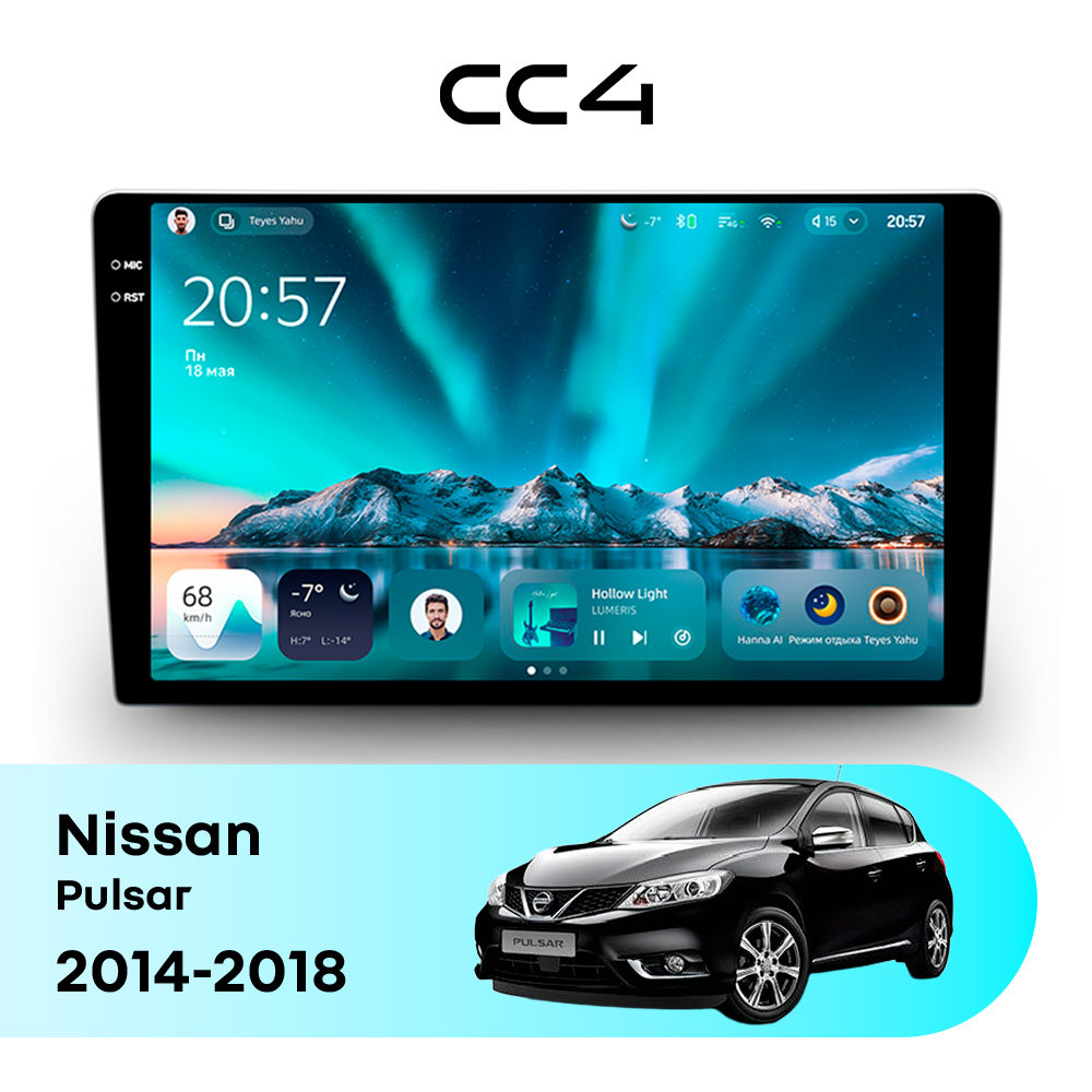 Teyes CC4 для Nissan Pulsar 2014-2018 — современная штатная магнитола на базе Teyes OS Android 14, которая устанавливается вместо заводского головного устройства и значительно расширяет мультимедийные возможности автомобиля.