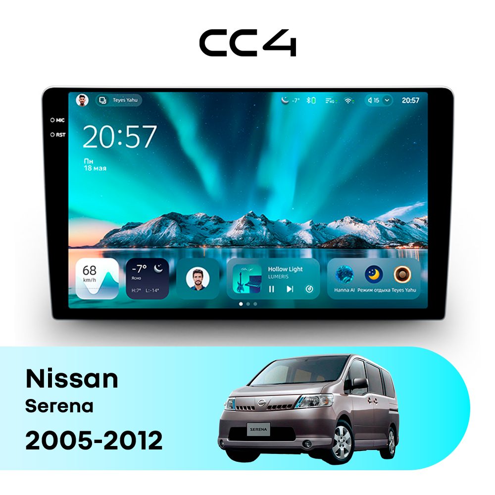 Teyes CC4 для Nissan Serena 2005-2012 — современная штатная магнитола на базе Teyes OS Android 14, которая устанавливается вместо заводского головного устройства и значительно расширяет мультимедийные возможности автомобиля.