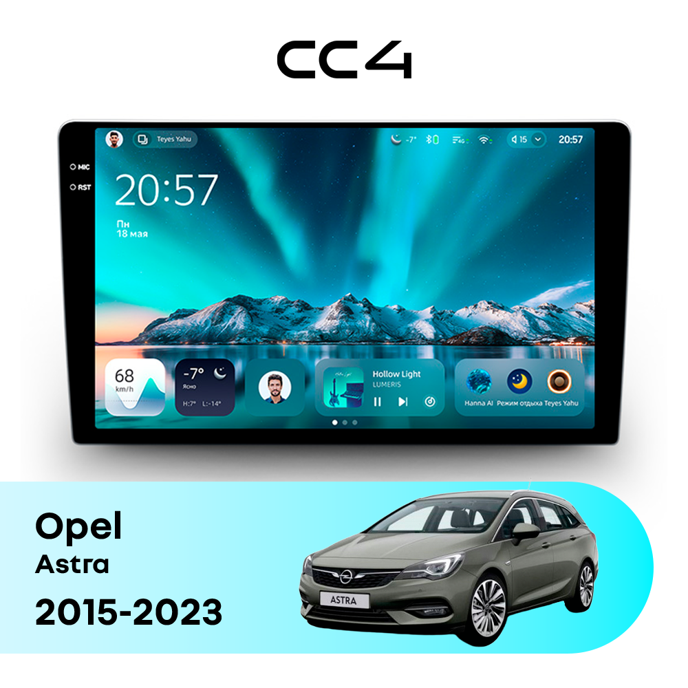Teyes CC4 для Opel Astra 2015-2023 — современная штатная магнитола на базе Teyes OS Android 14, которая устанавливается вместо заводского головного устройства и значительно расширяет мультимедийные возможности автомобиля.