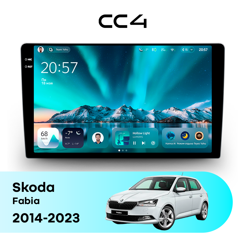 Teyes CC4 для Skoda Fabia 2014-2023 — современная штатная магнитола на базе Teyes OS Android 14, которая устанавливается вместо заводского головного устройства и значительно расширяет мультимедийные возможности автомобиля.