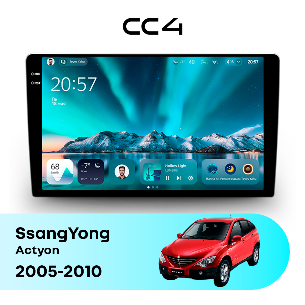 Автомагнитола Teyes CC4 — это современная магнитола Android, созданная для владельцев SsangYong Actyon I (2005-2010), которые хотят получить удобную, быструю и функциональную мультимедийную систему в автомобиле. Магнитола Teyes CC4 превращает салон SsangYong Actyon в комфортное цифровое пространство для навигации, музыки и мультимедиа с плавным интерфейсом и стабильной работой. Данная магнитола работает на системе Android и оснащена производительным 8-ядерным процессором Qualcomm QCM6125, который обеспечивает стабильную и быструю работу всех основных функций автомагнитолы. Конфигурация 8Gb оперативной памяти и 128Gb встроенной памяти позволяет комфортно использовать навигацию, музыку и онлайн-сервисы без задержек — отличный выбор для SsangYong Actyon (I (2005-2010)). Магнитола Teyes CC4 оснащена качественным In-cell QLED дисплеем диагональю 9.5" с высоким разрешением 2000×1200 пикселей, обеспечивающим четкое и насыщенное изображение при любом освещении в салоне SsangYong Actyon. Автомагнитола поддерживает Яндекс Навигатор, Google Maps, YouTube, голосовое управление Teyes, камеры заднего вида и управление с кнопок руля — всё, что нужно для удобства и безопасности в SsangYong Actyon I (2005-2010). Магнитола Teyes CC4 — это оптимальный выбор по соотношению цены и возможностей среди Android магнитол. Если вам нужна надежная и современная магнитола для SsangYong Actyon — автомагнитола Teyes CC4 станет отличным решением.