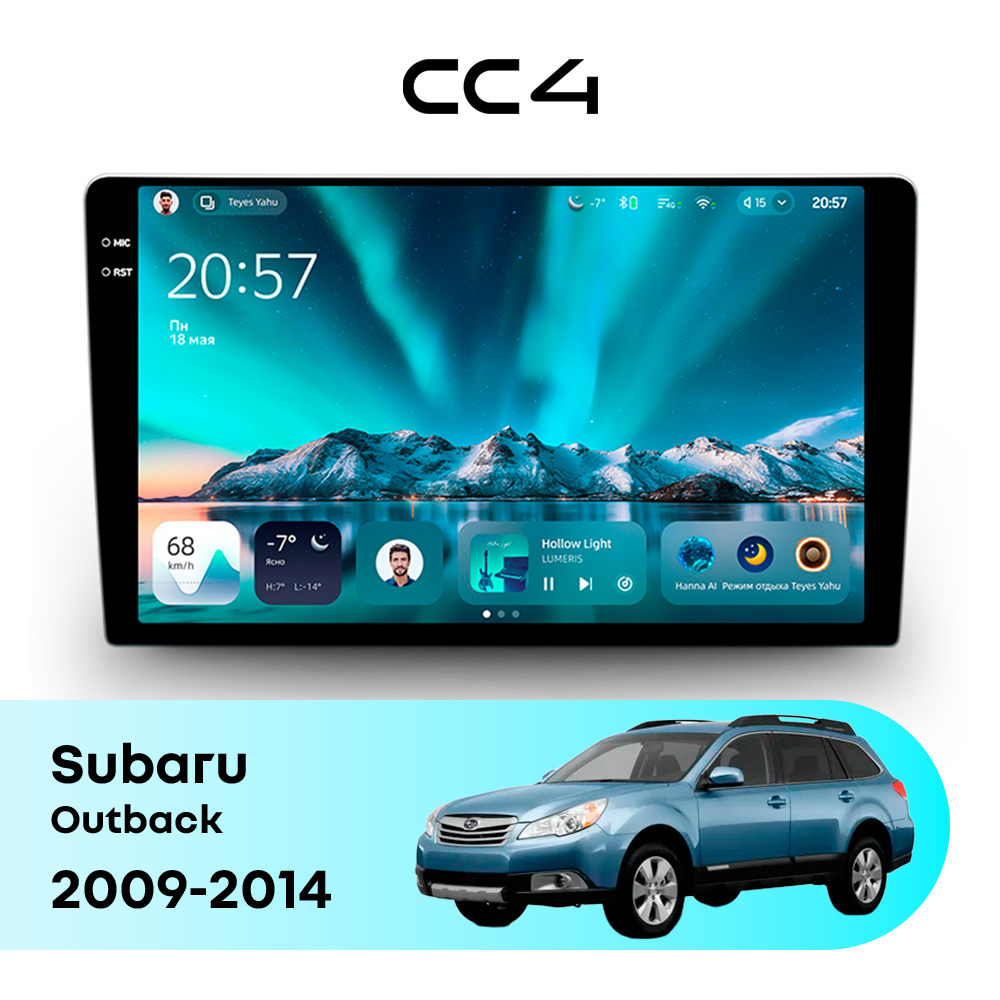 Teyes CC4 для Subaru Outback 2009-2014 — современная штатная магнитола на базе Teyes OS Android 14, которая устанавливается вместо заводского головного устройства и значительно расширяет мультимедийные возможности автомобиля.