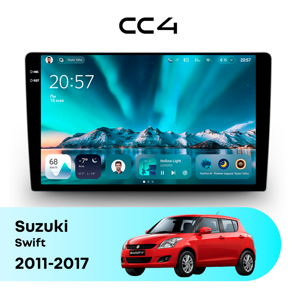 Teyes CC4 для Suzuki Swift 2011-2017 — современная штатная магнитола на базе Teyes OS Android 14, которая устанавливается вместо заводского головного устройства и значительно расширяет мультимедийные возможности автомобиля.