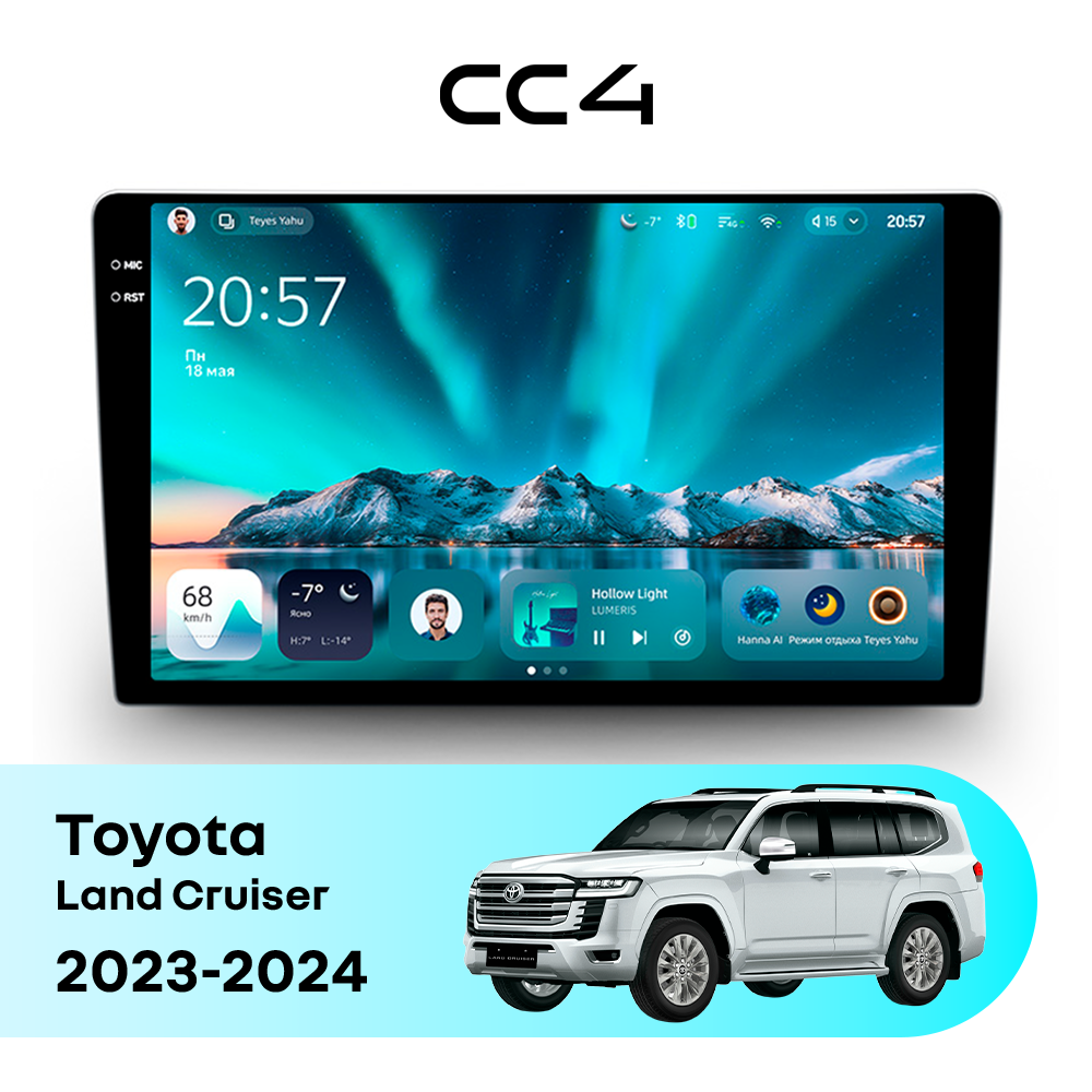 Автомагнитола Teyes CC4 — это современная магнитола Android, созданная для владельцев Toyota Land Cruiser 70 рестайлинг 2 (2023-2024), которые хотят получить удобную, быструю и функциональную мультимедийную систему в автомобиле. Магнитола Teyes CC4 превращает салон Toyota Land Cruiser в комфортное цифровое пространство для навигации, музыки и мультимедиа с плавным интерфейсом и стабильной работой. Данная магнитола работает на системе Android и оснащена производительным 8-ядерным процессором Qualcomm QCM6125, который обеспечивает стабильную и быструю работу всех основных функций автомагнитолы. Конфигурация 8Gb оперативной памяти и 128Gb встроенной памяти позволяет комфортно использовать навигацию, музыку и онлайн-сервисы без задержек — отличный выбор для Toyota Land Cruiser (70 рестайлинг 2 (2023-2024)). Магнитола Teyes CC4 оснащена качественным In-cell QLED дисплеем диагональю 9.5" с высоким разрешением 2000×1200 пикселей, обеспечивающим четкое и насыщенное изображение при любом освещении в салоне Toyota Land Cruiser. Автомагнитола поддерживает Яндекс Навигатор, Google Maps, YouTube, голосовое управление Teyes, камеры заднего вида и управление с кнопок руля — всё, что нужно для удобства и безопасности в Toyota Land Cruiser 70 рестайлинг 2 (2023-2024). Магнитола Teyes CC4 — это оптимальный выбор по соотношению цены и возможностей среди Android магнитол. Если вам нужна надежная и современная магнитола для Toyota Land Cruiser — автомагнитола Teyes CC4 станет отличным решением.