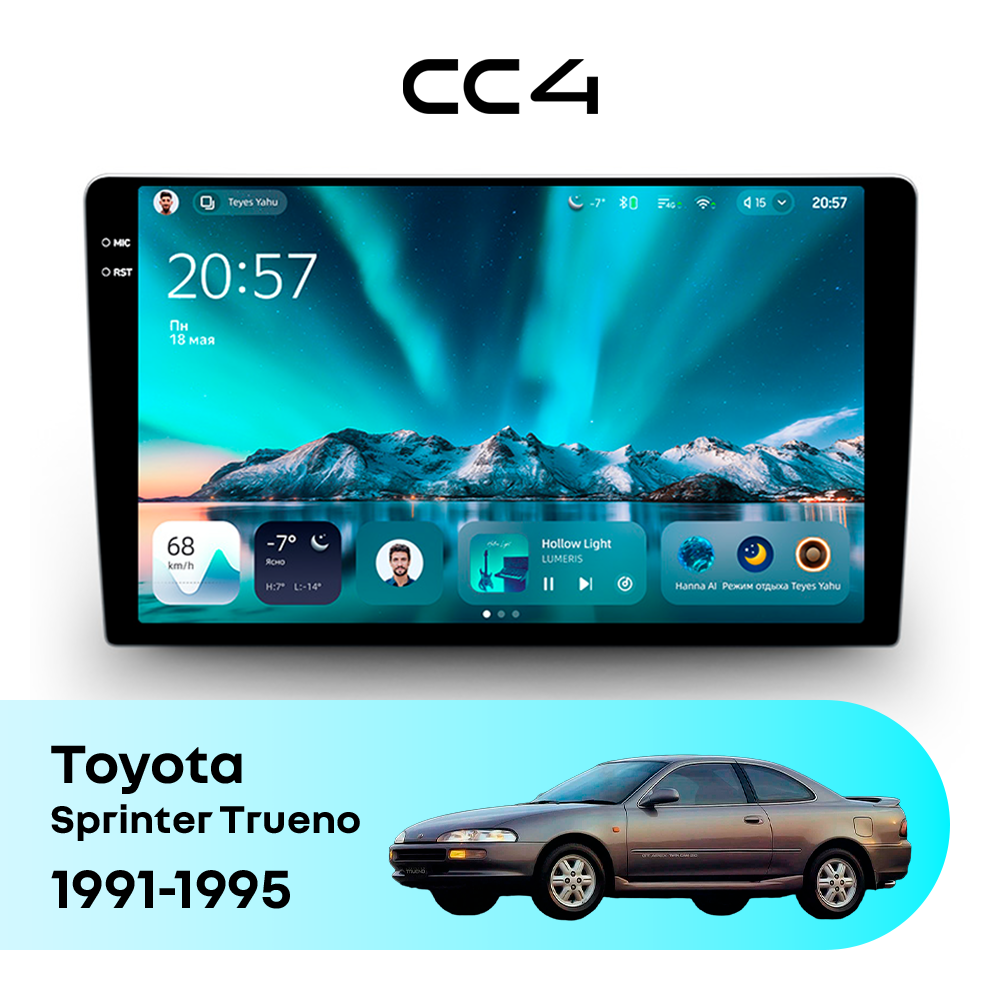 Автомагнитола Teyes CC4 — это современная магнитола Android, созданная для владельцев Toyota Sprinter Trueno VIII (1991-1995), которые хотят получить удобную, быструю и функциональную мультимедийную систему в автомобиле. Магнитола Teyes CC4 превращает салон Toyota Sprinter Trueno в комфортное цифровое пространство для навигации, музыки и мультимедиа с плавным интерфейсом и стабильной работой. Данная магнитола работает на системе Android и оснащена производительным 8-ядерным процессором Qualcomm QCM6125, который обеспечивает стабильную и быструю работу всех основных функций автомагнитолы. Конфигурация 8Gb оперативной памяти и 128Gb встроенной памяти позволяет комфортно использовать навигацию, музыку и онлайн-сервисы без задержек — отличный выбор для Toyota Sprinter Trueno (VIII (1991-1995)). Магнитола Teyes CC4 оснащена качественным In-cell QLED дисплеем диагональю 9.5" с высоким разрешением 2000×1200 пикселей, обеспечивающим четкое и насыщенное изображение при любом освещении в салоне Toyota Sprinter Trueno. Автомагнитола поддерживает Яндекс Навигатор, Google Maps, YouTube, голосовое управление Teyes, камеры заднего вида и управление с кнопок руля — всё, что нужно для удобства и безопасности в Toyota Sprinter Trueno VIII (1991-1995). Магнитола Teyes CC4 — это оптимальный выбор по соотношению цены и возможностей среди Android магнитол. Если вам нужна надежная и современная магнитола для Toyota Sprinter Trueno — автомагнитола Teyes CC4 станет отличным решением.