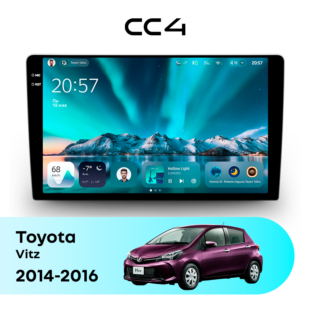 Автомагнитола Teyes CC4 — это современная магнитола Android, созданная для владельцев Toyota Vitz III рестайлинг (2014-2016), которые хотят получить удобную, быструю и функциональную мультимедийную систему в автомобиле. Магнитола Teyes CC4 превращает салон Toyota Vitz в комфортное цифровое пространство для навигации, музыки и мультимедиа с плавным интерфейсом и стабильной работой. Данная магнитола работает на системе Android и оснащена производительным 8-ядерным процессором Qualcomm QCM6125, который обеспечивает стабильную и быструю работу всех основных функций автомагнитолы. Конфигурация 8Gb оперативной памяти и 128Gb встроенной памяти позволяет комфортно использовать навигацию, музыку и онлайн-сервисы без задержек — отличный выбор для Toyota Vitz (III рестайлинг (2014-2016)). Магнитола Teyes CC4 оснащена качественным In-cell QLED дисплеем диагональю 9.5" с высоким разрешением 2000×1200 пикселей, обеспечивающим четкое и насыщенное изображение при любом освещении в салоне Toyota Vitz. Автомагнитола поддерживает Яндекс Навигатор, Google Maps, YouTube, голосовое управление Teyes, камеры заднего вида и управление с кнопок руля — всё, что нужно для удобства и безопасности в Toyota Vitz III рестайлинг (2014-2016). Магнитола Teyes CC4 — это оптимальный выбор по соотношению цены и возможностей среди Android магнитол. Если вам нужна надежная и современная магнитола для Toyota Vitz — автомагнитола Teyes CC4 станет отличным решением.