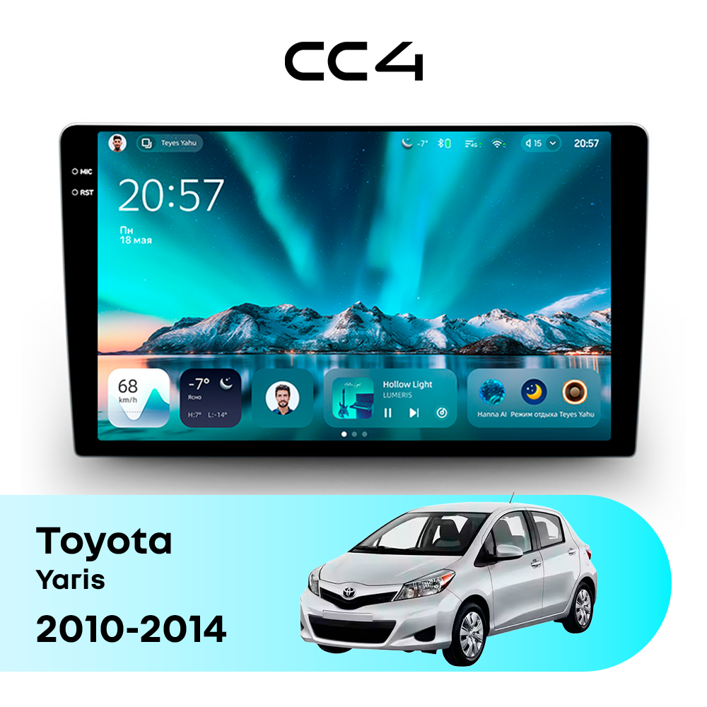 Автомагнитола Teyes CC4 — это современная магнитола Android, созданная для владельцев Toyota Yaris III (2010-2014), которые хотят получить удобную, быструю и функциональную мультимедийную систему в автомобиле. Магнитола Teyes CC4 превращает салон Toyota Yaris в комфортное цифровое пространство для навигации, музыки и мультимедиа с плавным интерфейсом и стабильной работой. Данная магнитола работает на системе Android и оснащена производительным 8-ядерным процессором Qualcomm QCM6125, который обеспечивает стабильную и быструю работу всех основных функций автомагнитолы. Конфигурация 8Gb оперативной памяти и 128Gb встроенной памяти позволяет комфортно использовать навигацию, музыку и онлайн-сервисы без задержек — отличный выбор для Toyota Yaris (III (2010-2014)). Магнитола Teyes CC4 оснащена качественным In-cell QLED дисплеем диагональю 9.5" с высоким разрешением 2000×1200 пикселей, обеспечивающим четкое и насыщенное изображение при любом освещении в салоне Toyota Yaris. Автомагнитола поддерживает Яндекс Навигатор, Google Maps, YouTube, голосовое управление Teyes, камеры заднего вида и управление с кнопок руля — всё, что нужно для удобства и безопасности в Toyota Yaris III (2010-2014). Магнитола Teyes CC4 — это оптимальный выбор по соотношению цены и возможностей среди Android магнитол. Если вам нужна надежная и современная магнитола для Toyota Yaris — автомагнитола Teyes CC4 станет отличным решением.