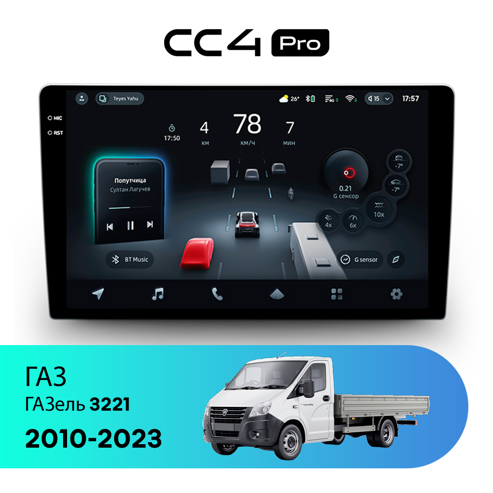 Teyes CC4 Pro для ГАЗ ГАЗель 3221 2010-2023 — продвинутая штатная магнитола премиального уровня на базе Teyes OS Android 14, созданная для тех, кто хочет получить максимум комфорта, быстродействия и современных функций в автомобиле.