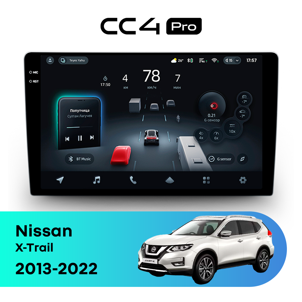 Автомагнитола Teyes CC4 Pro — это флагманская магнитола премиум-класса, созданная для владельцев Nissan X-Trail III (2013-2019),III рестайлинг (2017-2022), которые хотят получить максимум от мультимедиа в автомобиле. Магнитола Teyes CC4 Pro превращает салон Nissan X-Trail в современный цифровой центр управления с быстрым интерфейсом, топовой производительностью и премиальным изображением. Данная магнитола работает на системе Android и оснащена мощным 8-ядерным процессором Qualcomm QCM6490, что делает автомагнитолу Teyes CC4 Pro одной из самых быстрых магнитол на рынке. Конфигурация 12Gb оперативной памяти и 256Gb встроенной памяти позволяет использовать навигацию, музыку и приложения одновременно без зависаний — идеально для Nissan X-Trail (III (2013-2019),III рестайлинг (2017-2022)). Магнитола Teyes CC4 Pro оснащена премиальным In-cell QLED дисплеем диагональю 10.36" с высоким разрешением 2000×1200 пикселей, благодаря чему изображение на магнитоле остается ярким и четким при любом освещении в салоне Nissan X-Trail. Автомагнитола поддерживает Яндекс Навигатор, Google Maps, YouTube, голосовое управление Teyes, камеры заднего вида и 360°, а также штатные кнопки на руле — всё для максимального комфорта в Nissan X-Trail III (2013-2019),III рестайлинг (2017-2022). Магнитола Teyes CC4 Pro — это идеальный выбор для премиальных автомобилей и требовательных водителей, особенно если вы цените комфорт в Nissan X-Trail. Если вы ищете лучшую магнитолу Android без компромиссов для Nissan X-Trail — автомагнитола Teyes CC4 Pro станет оптимальным решением.