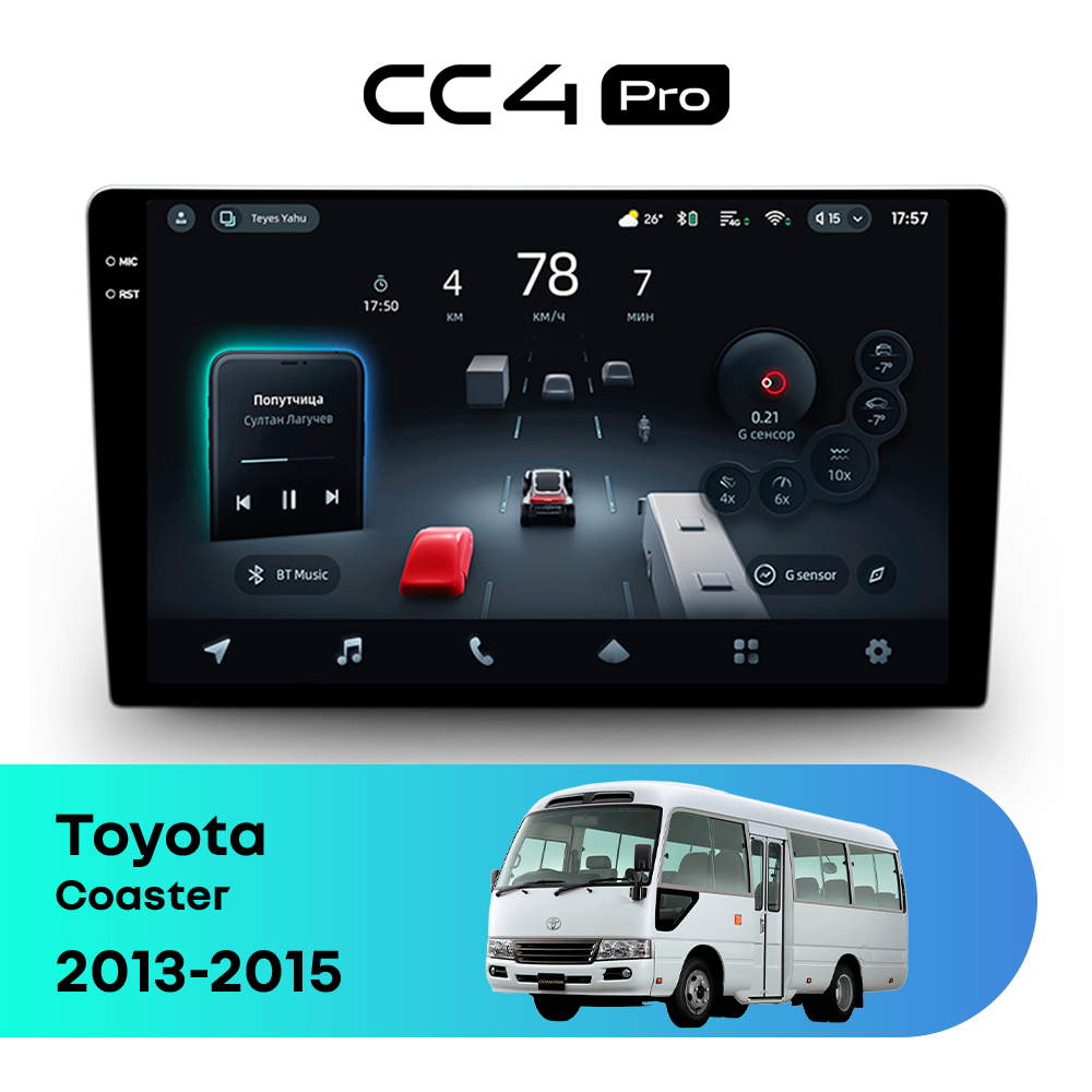 Автомагнитола Teyes CC4 Pro — это флагманская магнитола премиум-класса, созданная для владельцев Toyota Coaster 2013-2015, которые хотят получить максимум от мультимедиа в автомобиле. Магнитола Teyes CC4 Pro превращает салон Toyota Coaster в современный цифровой центр управления с быстрым интерфейсом, топовой производительностью и премиальным изображением. Данная магнитола работает на системе Android и оснащена мощным 8-ядерным процессором Qualcomm QCM6490, что делает автомагнитолу Teyes CC4 Pro одной из самых быстрых магнитол на рынке. Конфигурация 12Gb оперативной памяти и 256Gb встроенной памяти позволяет использовать навигацию, музыку и приложения одновременно без зависаний — идеально для Toyota Coaster (2013-2015). Магнитола Teyes CC4 Pro оснащена премиальным In-cell QLED дисплеем диагональю 10.36" с высоким разрешением 2000×1200 пикселей, благодаря чему изображение на магнитоле остается ярким и четким при любом освещении в салоне Toyota Coaster. Автомагнитола поддерживает Яндекс Навигатор, Google Maps, YouTube, голосовое управление Teyes, камеры заднего вида и 360°, а также штатные кнопки на руле — всё для максимального комфорта в Toyota Coaster 2013-2015. Магнитола Teyes CC4 Pro — это идеальный выбор для премиальных автомобилей и требовательных водителей, особенно если вы цените комфорт в Toyota Coaster. Если вы ищете лучшую магнитолу Android без компромиссов для Toyota Coaster — автомагнитола Teyes CC4 Pro станет оптимальным решением.
