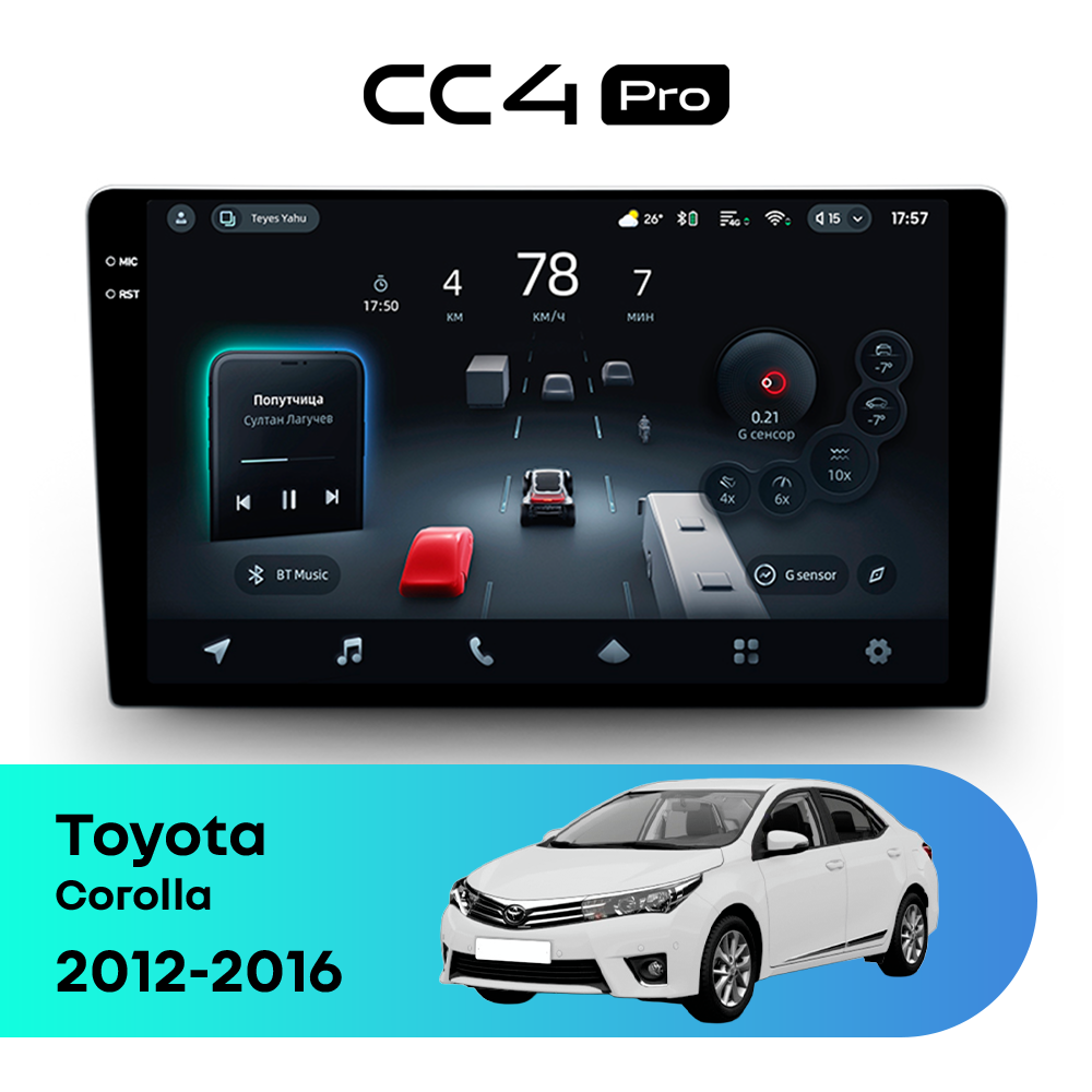 Автомагнитола Teyes CC4 Pro — это флагманская магнитола премиум-класса, созданная для владельцев Toyota Corolla XI (2012-2016), которые хотят получить максимум от мультимедиа в автомобиле. Магнитола Teyes CC4 Pro превращает салон Toyota Corolla в современный цифровой центр управления с быстрым интерфейсом, топовой производительностью и премиальным изображением. Данная магнитола работает на системе Android и оснащена мощным 8-ядерным процессором Qualcomm QCM6490, что делает автомагнитолу Teyes CC4 Pro одной из самых быстрых магнитол на рынке. Конфигурация 12Gb оперативной памяти и 256Gb встроенной памяти позволяет использовать навигацию, музыку и приложения одновременно без зависаний — идеально для Toyota Corolla (XI (2012-2016)). Магнитола Teyes CC4 Pro оснащена премиальным In-cell QLED дисплеем диагональю 10.36" с высоким разрешением 2000×1200 пикселей, благодаря чему изображение на магнитоле остается ярким и четким при любом освещении в салоне Toyota Corolla. Автомагнитола поддерживает Яндекс Навигатор, Google Maps, YouTube, голосовое управление Teyes, камеры заднего вида и 360°, а также штатные кнопки на руле — всё для максимального комфорта в Toyota Corolla XI (2012-2016). Магнитола Teyes CC4 Pro — это идеальный выбор для премиальных автомобилей и требовательных водителей, особенно если вы цените комфорт в Toyota Corolla. Если вы ищете лучшую магнитолу Android без компромиссов для Toyota Corolla — автомагнитола Teyes CC4 Pro станет оптимальным решением.