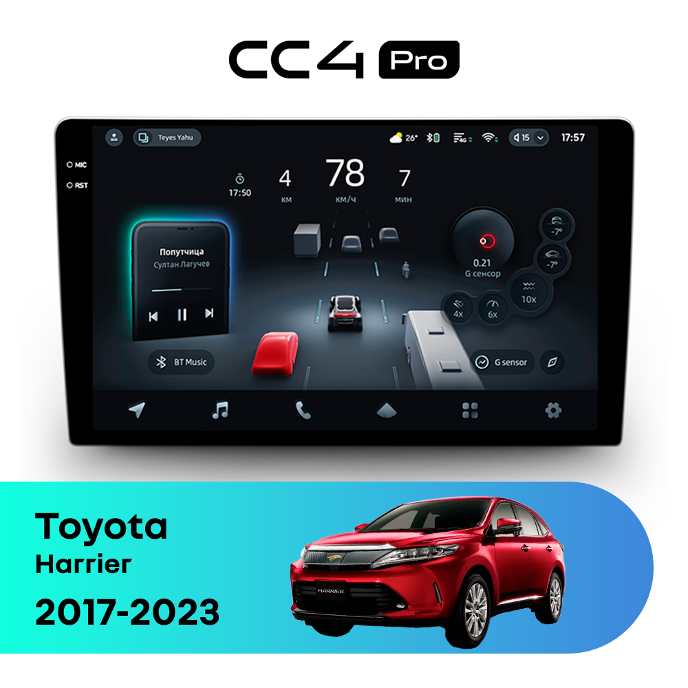 Автомагнитола Teyes CC4 Pro — это флагманская магнитола премиум-класса, созданная для владельцев Toyota Harrier XU60 рестайлинг (2017-2020),XU80 (2020-2023), которые хотят получить максимум от мультимедиа в автомобиле. Магнитола Teyes CC4 Pro превращает салон Toyota Harrier в современный цифровой центр управления с быстрым интерфейсом, топовой производительностью и премиальным изображением. Данная магнитола работает на системе Android и оснащена мощным 8-ядерным процессором Qualcomm QCM6490, что делает автомагнитолу Teyes CC4 Pro одной из самых быстрых магнитол на рынке. Конфигурация 12Gb оперативной памяти и 256Gb встроенной памяти позволяет использовать навигацию, музыку и приложения одновременно без зависаний — идеально для Toyota Harrier (XU60 рестайлинг (2017-2020),XU80 (2020-2023)). Магнитола Teyes CC4 Pro оснащена премиальным In-cell QLED дисплеем диагональю 10.36" с высоким разрешением 2000×1200 пикселей, благодаря чему изображение на магнитоле остается ярким и четким при любом освещении в салоне Toyota Harrier. Автомагнитола поддерживает Яндекс Навигатор, Google Maps, YouTube, голосовое управление Teyes, камеры заднего вида и 360°, а также штатные кнопки на руле — всё для максимального комфорта в Toyota Harrier XU60 рестайлинг (2017-2020),XU80 (2020-2023). Магнитола Teyes CC4 Pro — это идеальный выбор для премиальных автомобилей и требовательных водителей, особенно если вы цените комфорт в Toyota Harrier. Если вы ищете лучшую магнитолу Android без компромиссов для Toyota Harrier — автомагнитола Teyes CC4 Pro станет оптимальным решением.